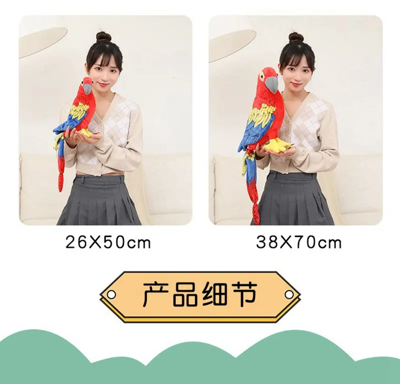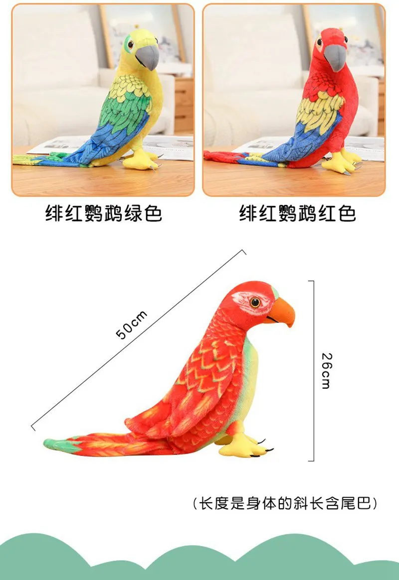 1PC 50CM/70CM Funny Lifelike Parrot Plush Toys Soft Cute Wild Animals Stuffed Doll Soft Bird Toys Gift Home Decor