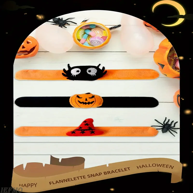 1pcs Halloween Slap Bracelet Party Ghost, Pumpkin and Spider Design Christmas Bulk Halloween Decorations