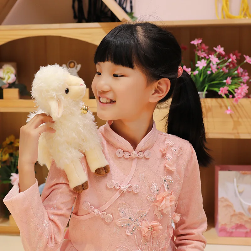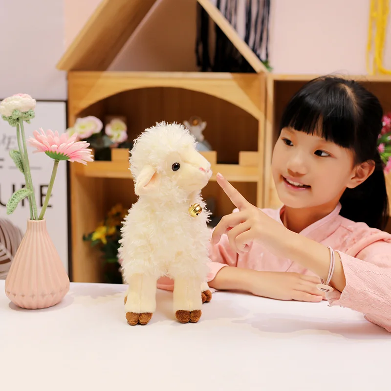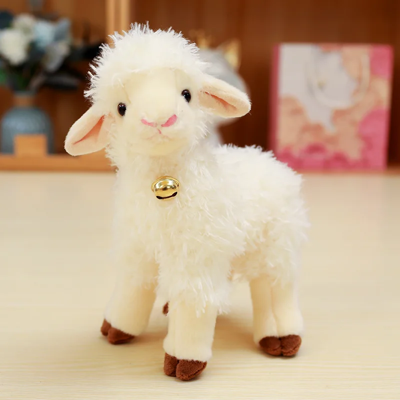 25/35cm Simulation Kawaii Animal Bell Sheep Plush Toys Lifelike Lamb Dolls Cute Alpaca Model Children Girls Birthday Gifts