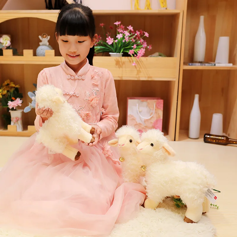 25/35cm Simulation Kawaii Animal Bell Sheep Plush Toys Lifelike Lamb Dolls Cute Alpaca Model lovely Children birthdayGirls Gifts