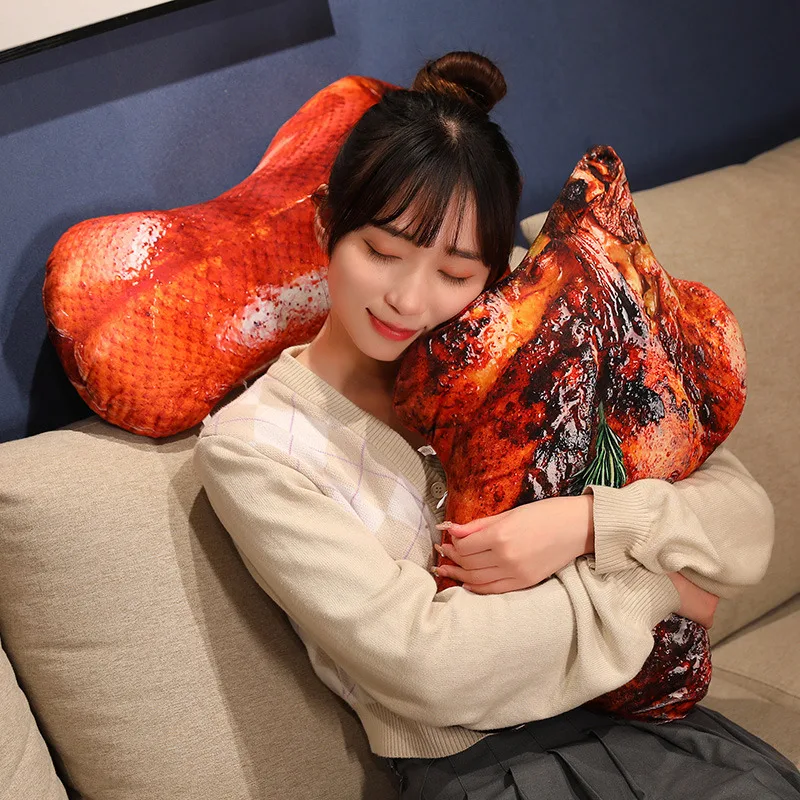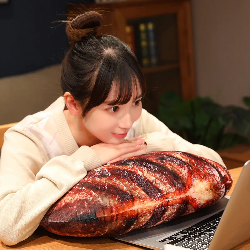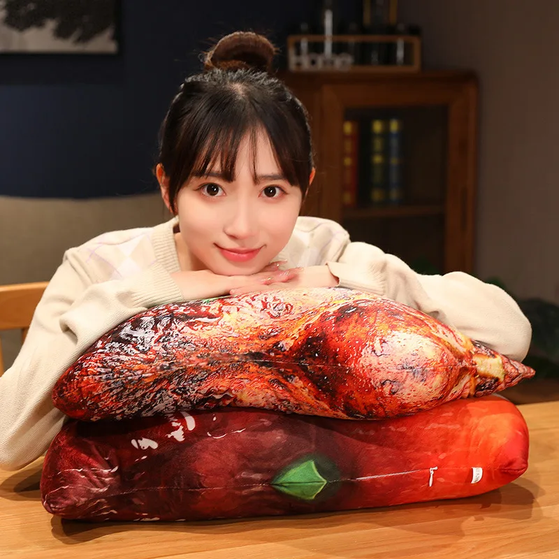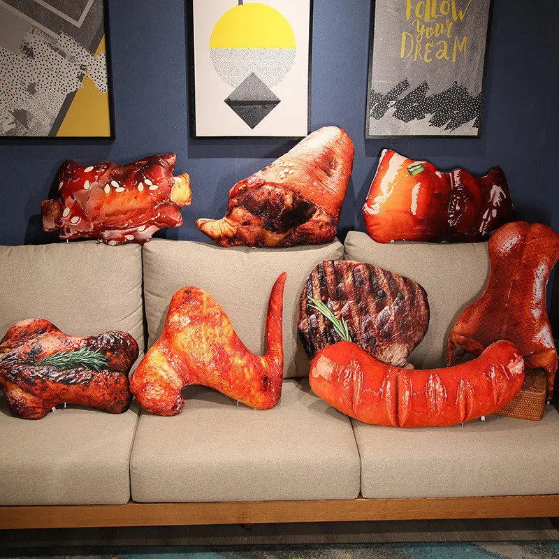 3D Lifelike Plush Food Pillow Stuffed Roast Chicken Sausages Steak Beef Toy Soft Cushion Creative Gift Restaurant Decoration