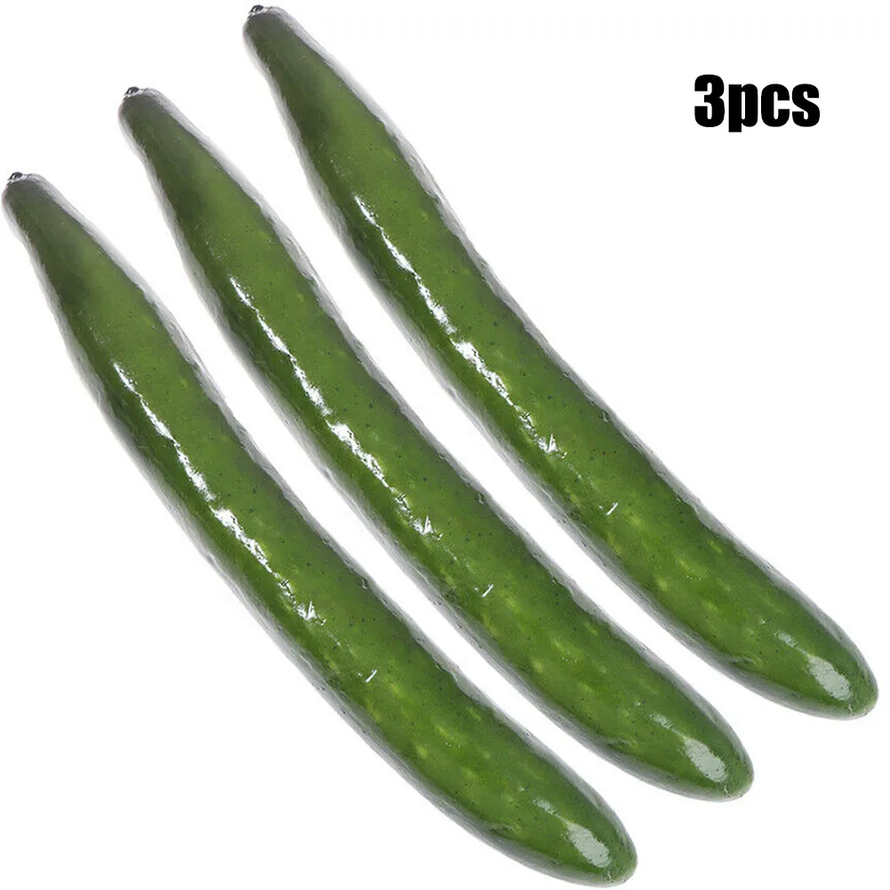 3Pcs Realistic Artificial Fake Cucumber Foam Lifelike Simulation Cucumber Fake Vegetable Props Home Kitchen Decoration Toy