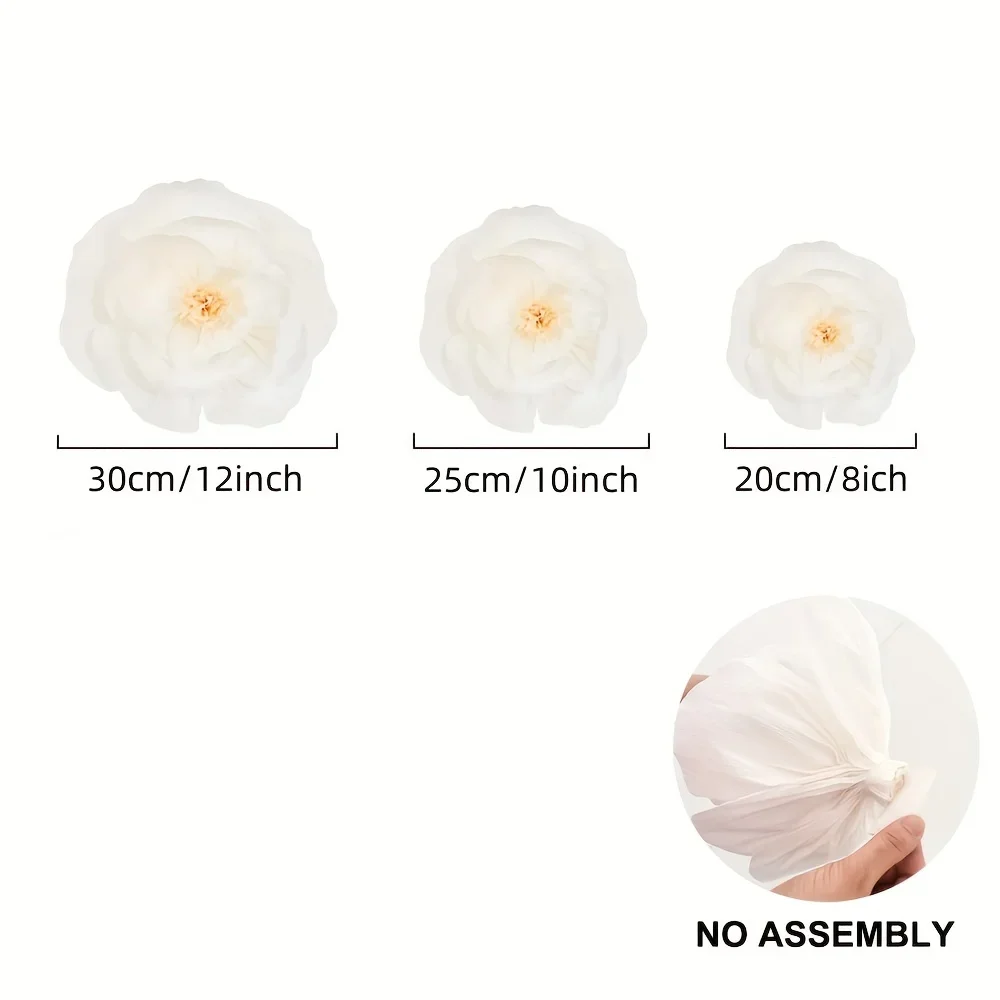 3pcs Set - Handcrafted Crepe Paper Flowers - Realistic Wall Backdrop Decor for Weddings, Birthdays, Baby Showers Custom stickers