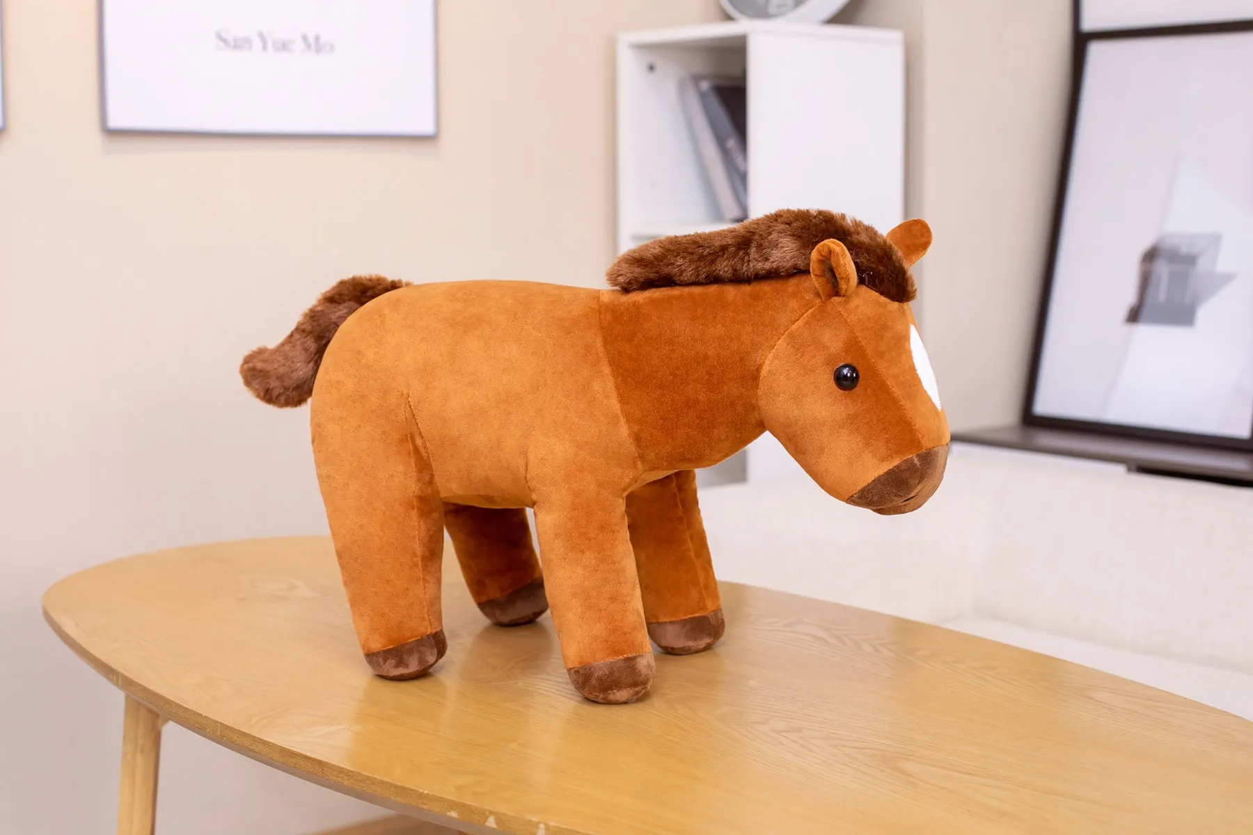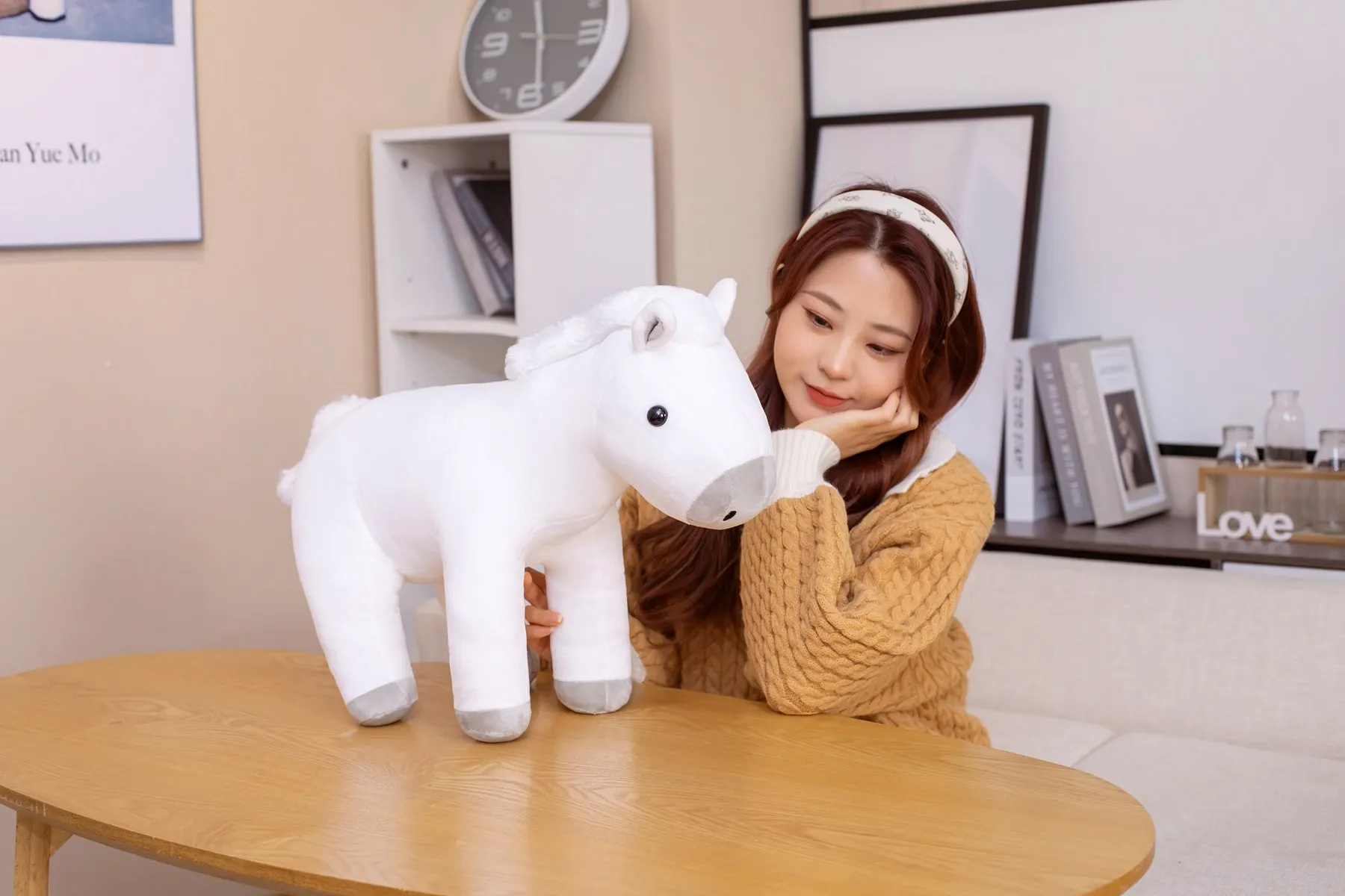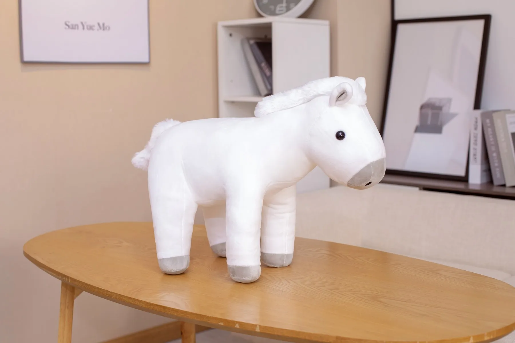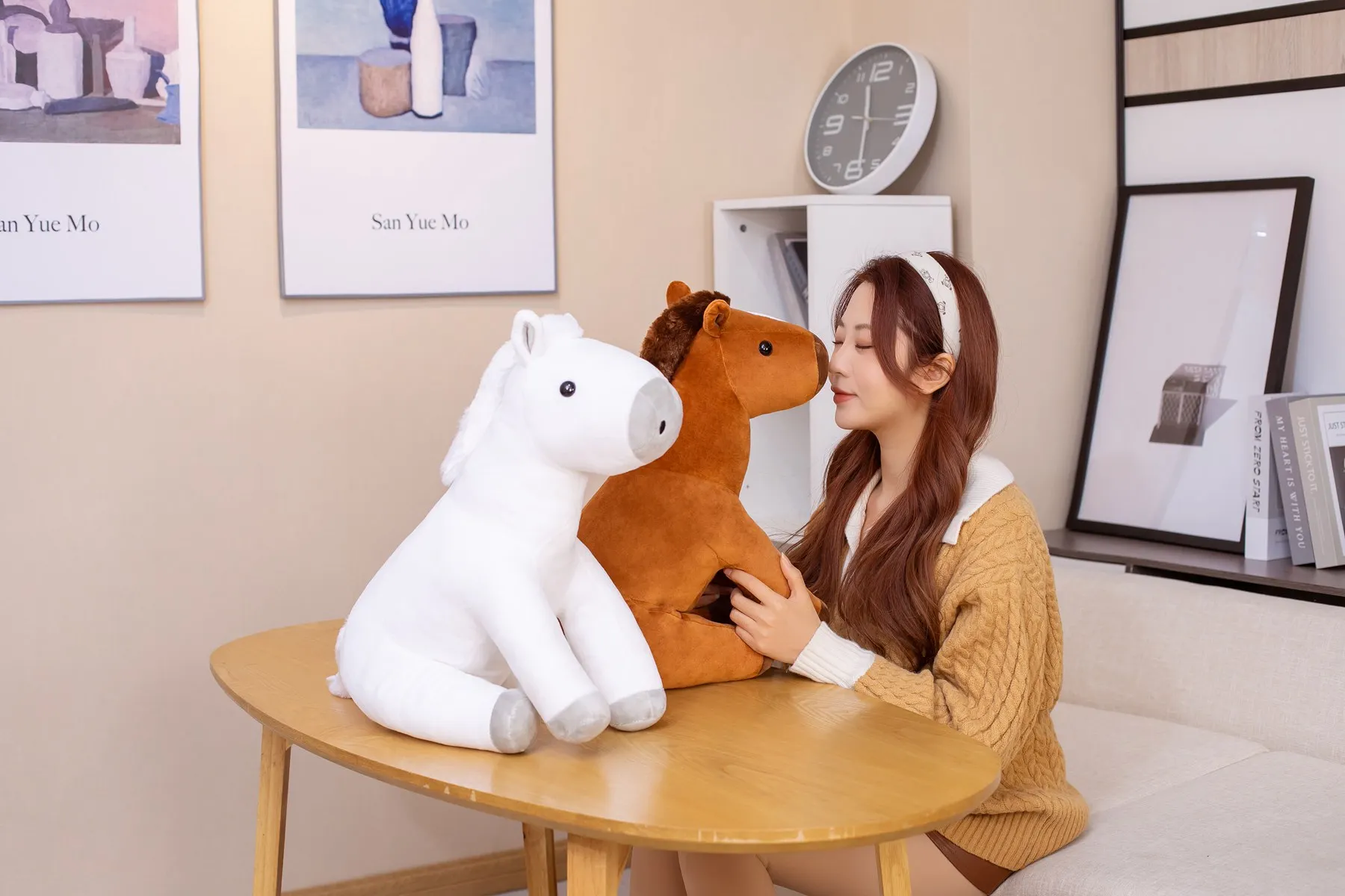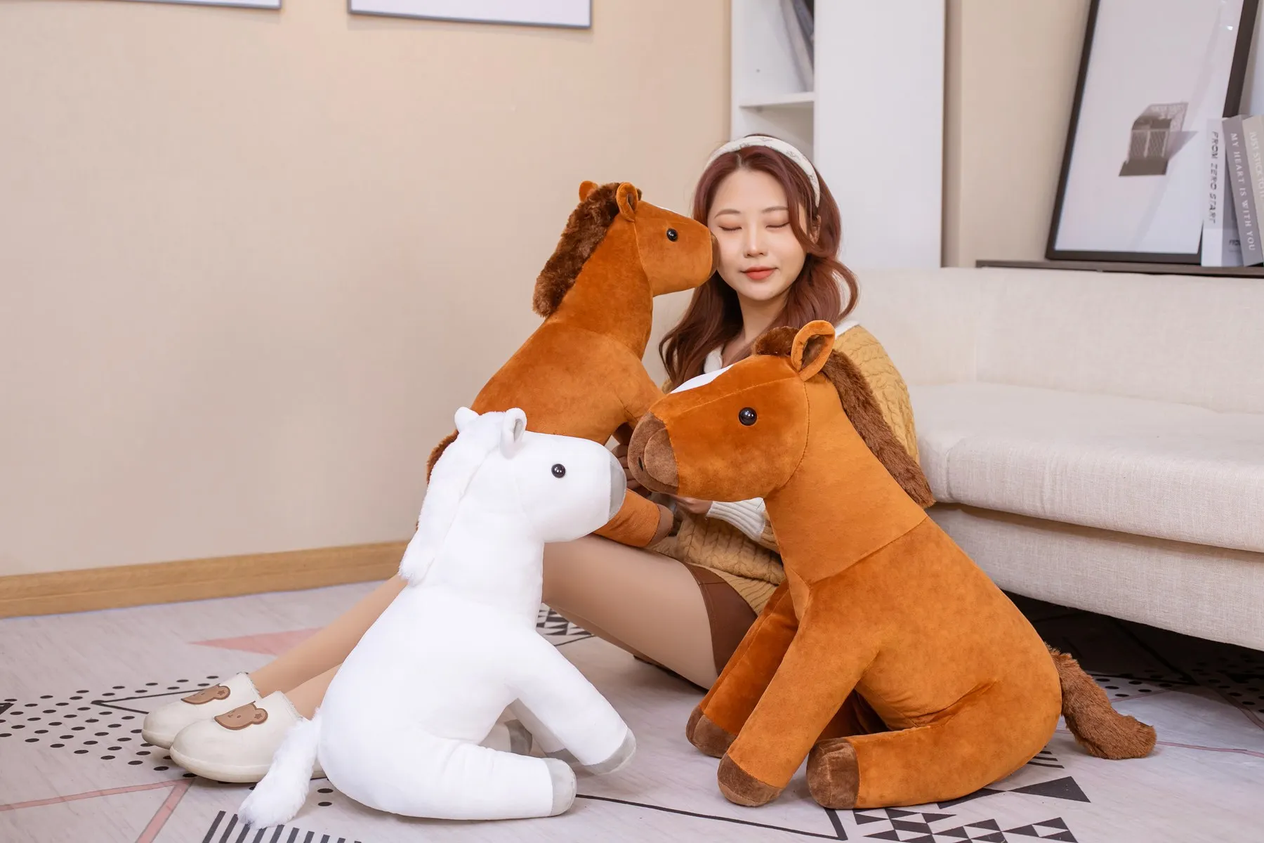 60/80CM Simulation Sitting Horse Plush Toys Lifelike Brown White Horse Dolls Stuffed Soft Animal Toys Kids Birthday Decor Gift