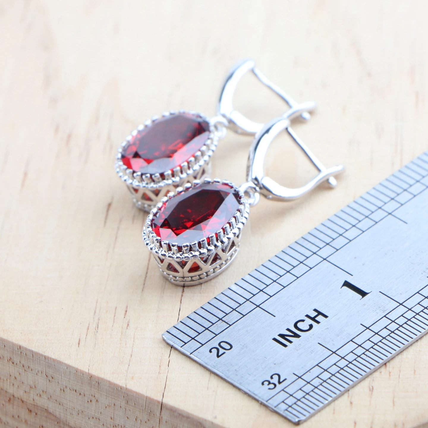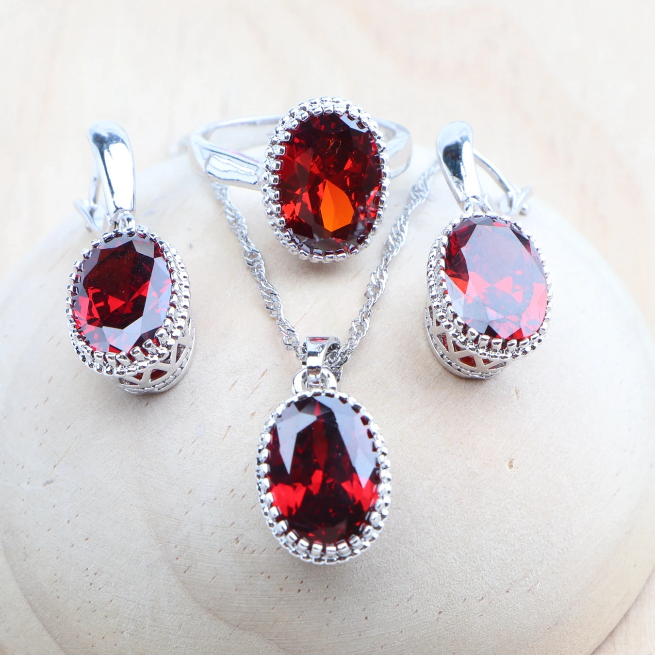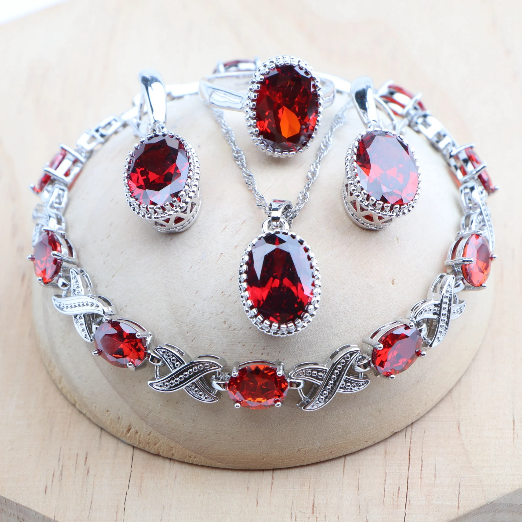 925 Silver Bridal Jewelry Sets Red Zirconia For Women Wedding Necklace Earrings Rings Bracelets Pendant