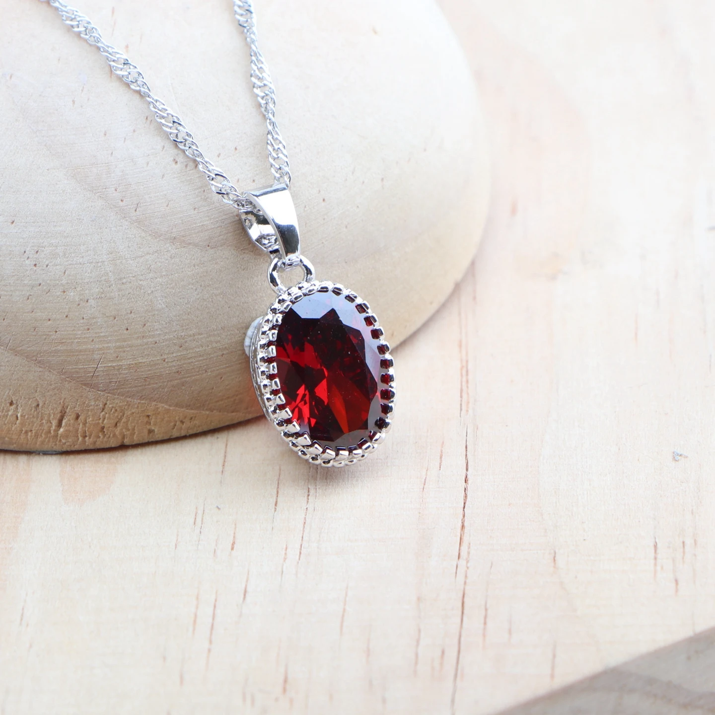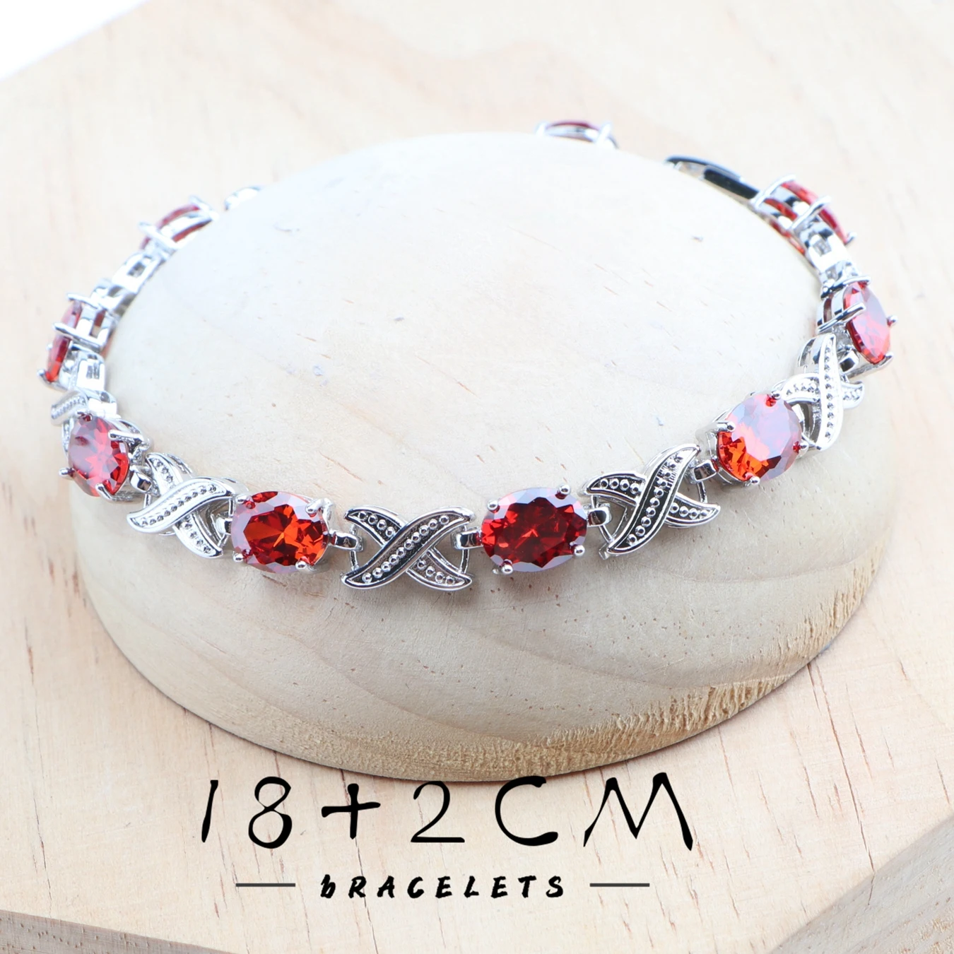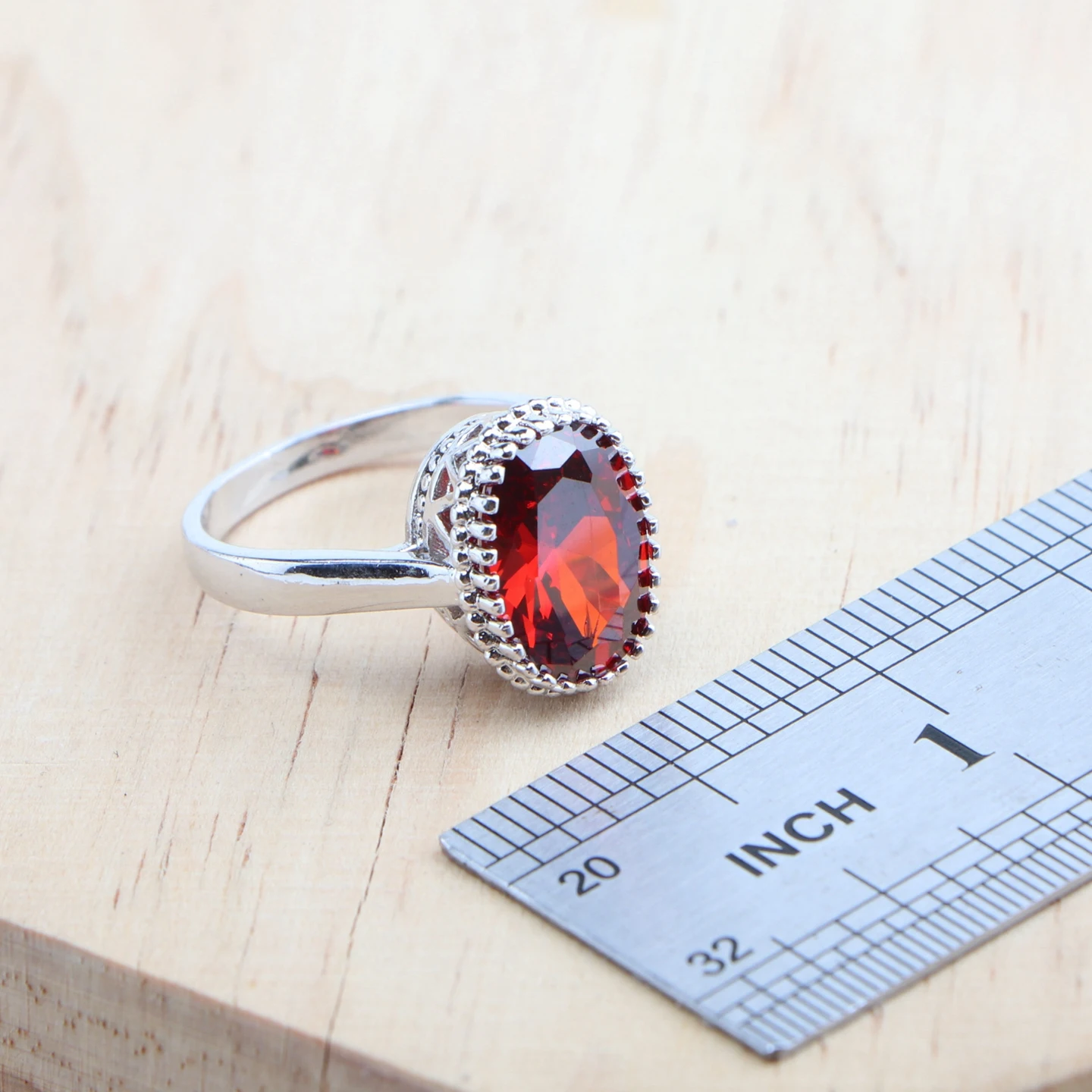 925 Silver Bridal Jewelry Sets Red Zirconia For Women Wedding Necklace Earrings Rings Bracelets Pendant