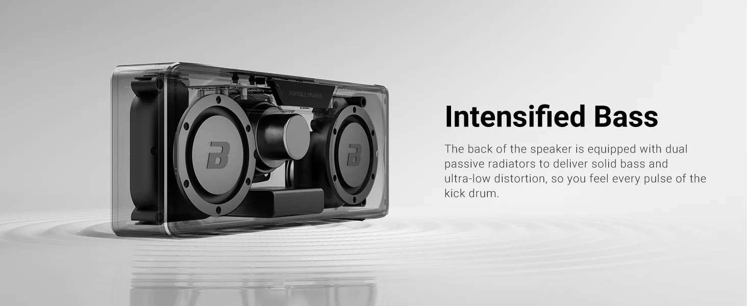 The back of the speaker is equipped with dualpassive radiators to deliver solid bass andultra-low distortion, so you feel every pulse of thekick drum.