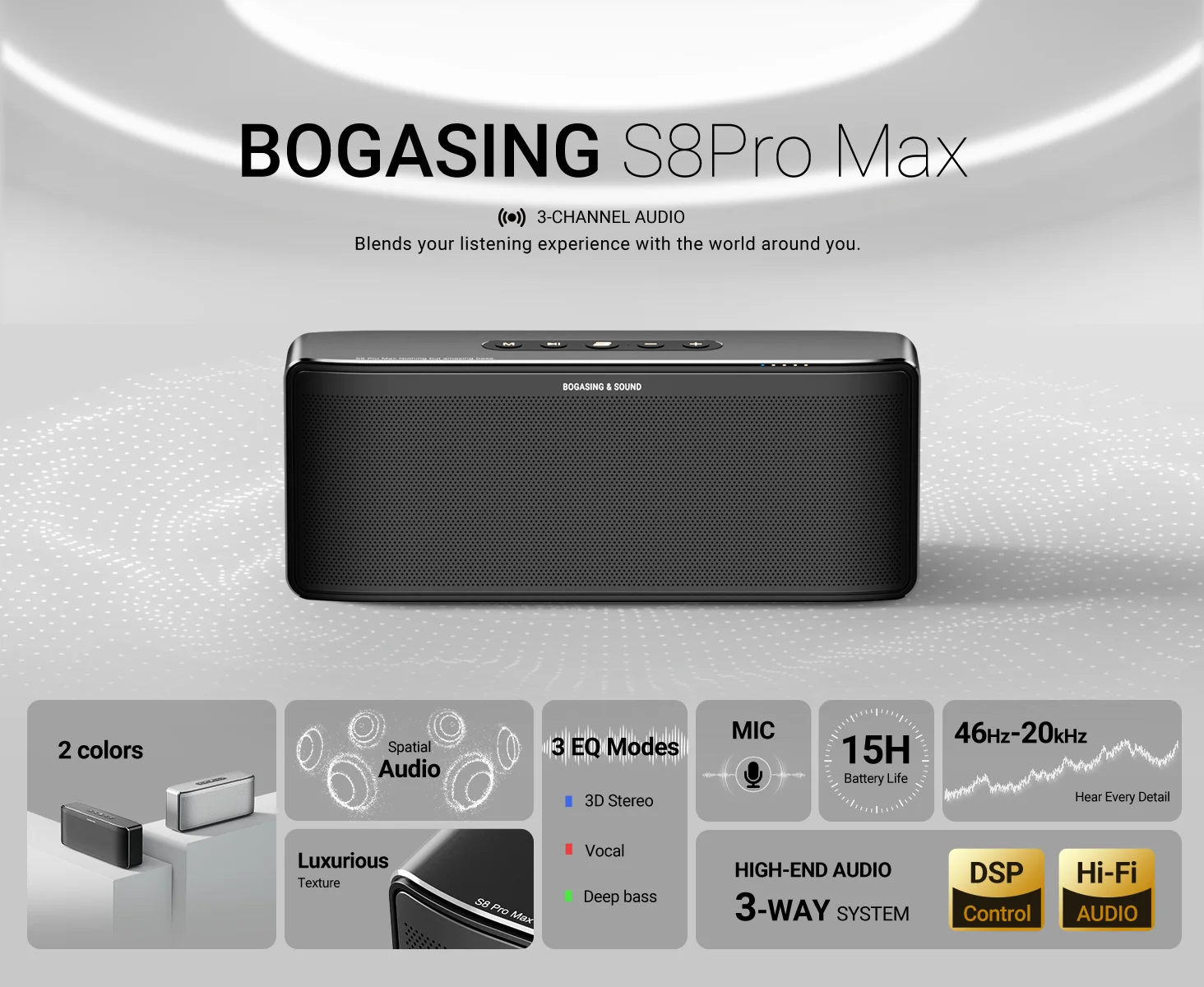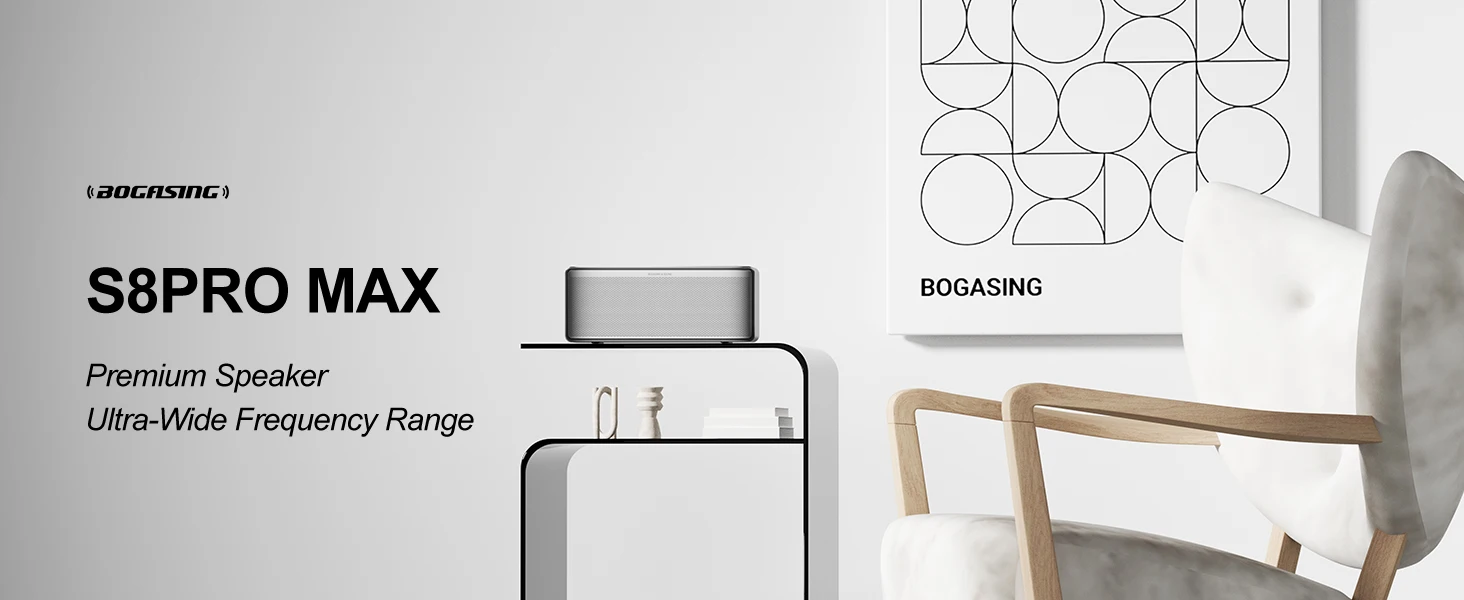 BOGASING S8 Pro Max Bluetooth Speaker,3-Channel Audio with Lifelike Stereo Sound & Punchy Bass,DSP,AUX,Built-in Mic,for Indoor