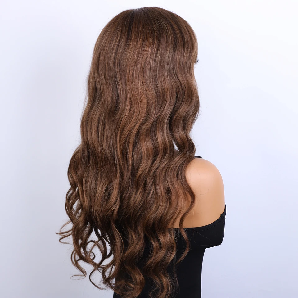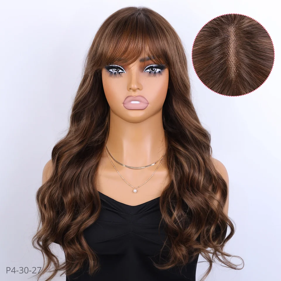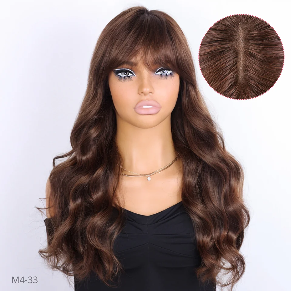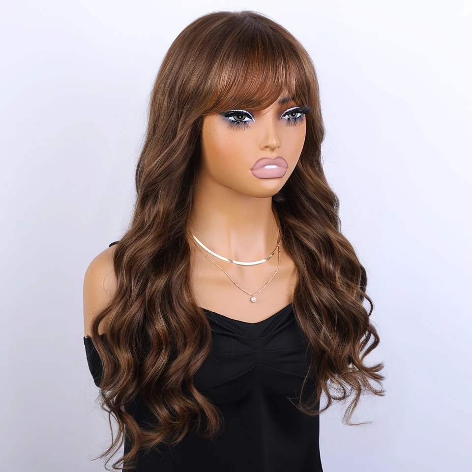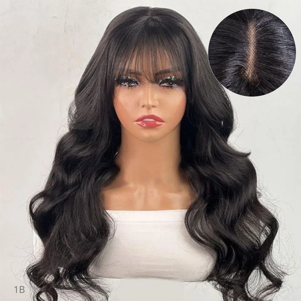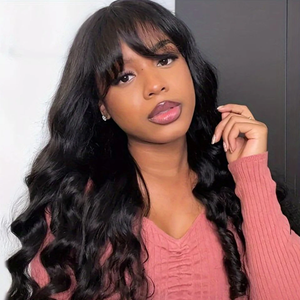 Brazilian Body Wave Human Hair Lace Wig With Bangs For Women Natural Remy Fringe 22 Inches Realistic Scalp Human Hair Wigs