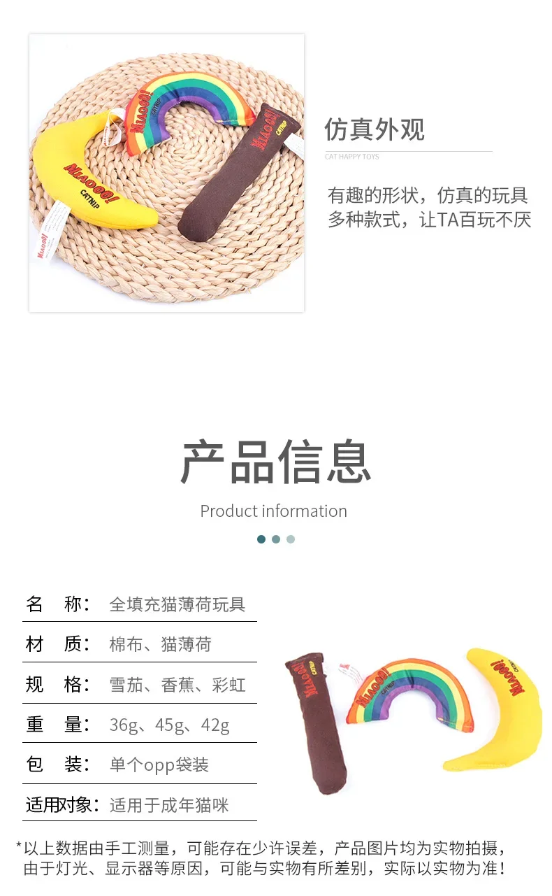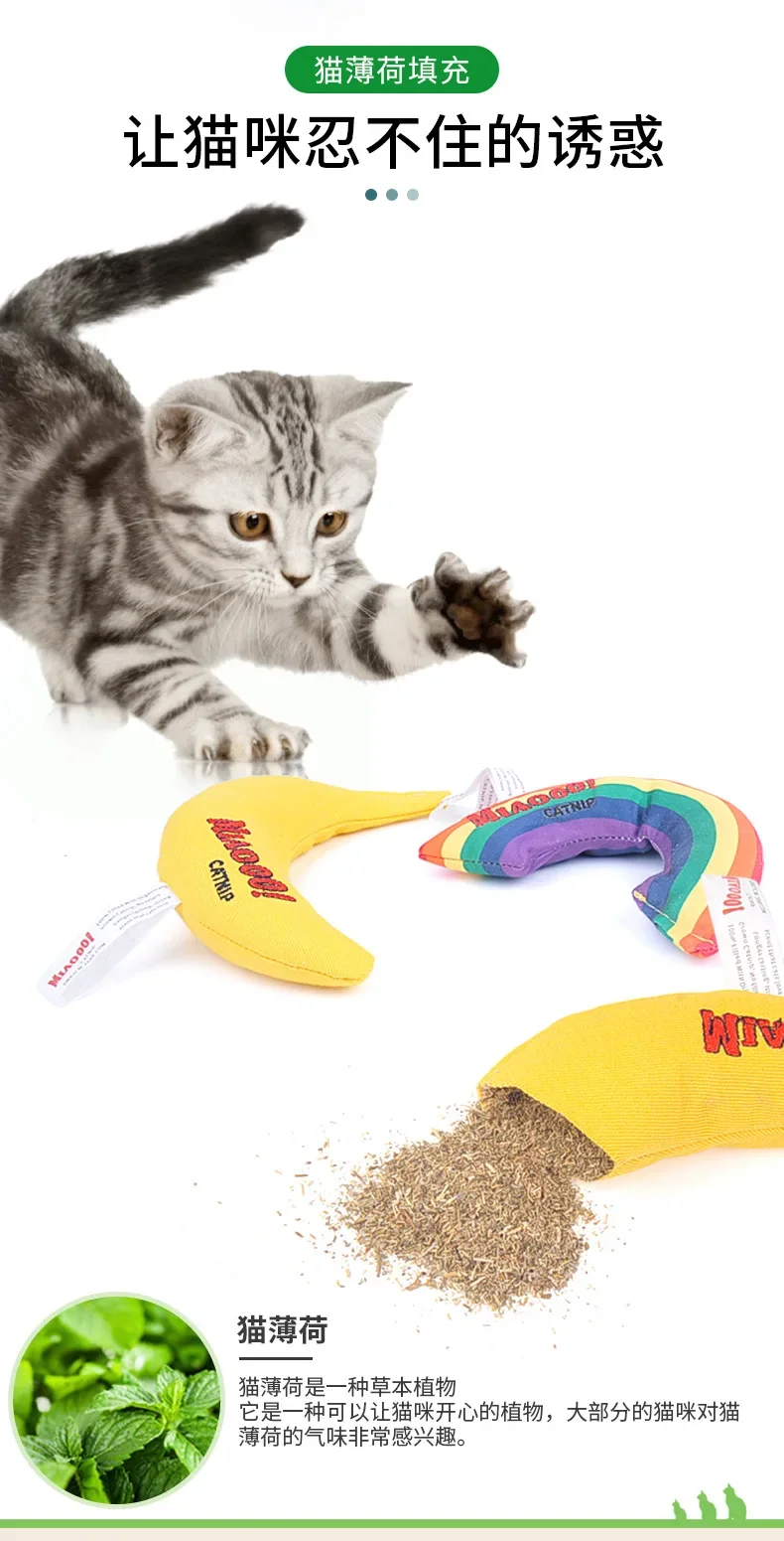 Cat Catnip Toy Cat Funny Interactive Plush Toy Banana Rainbow Kitten Chewing Squeaky Toy Pets Cat Supplies Dropshipping