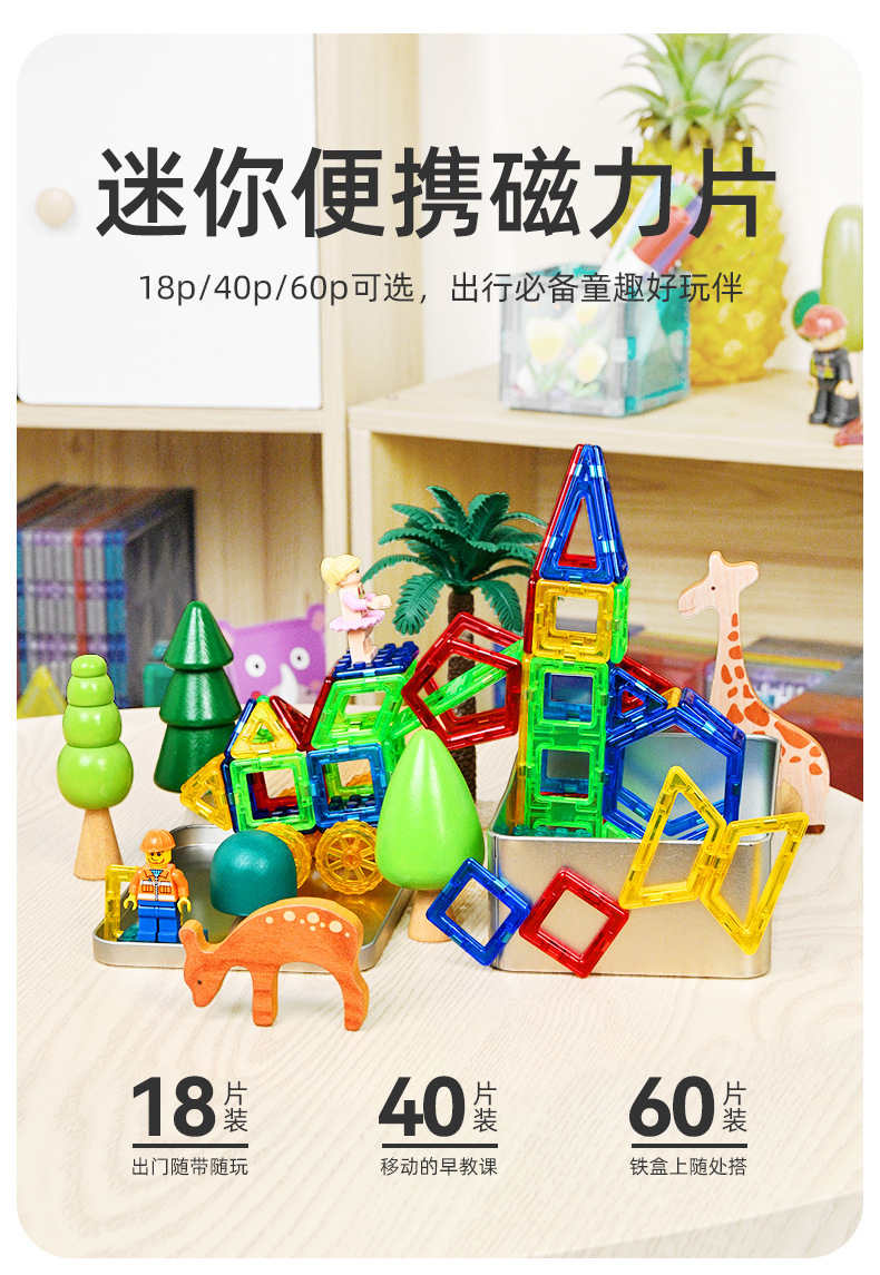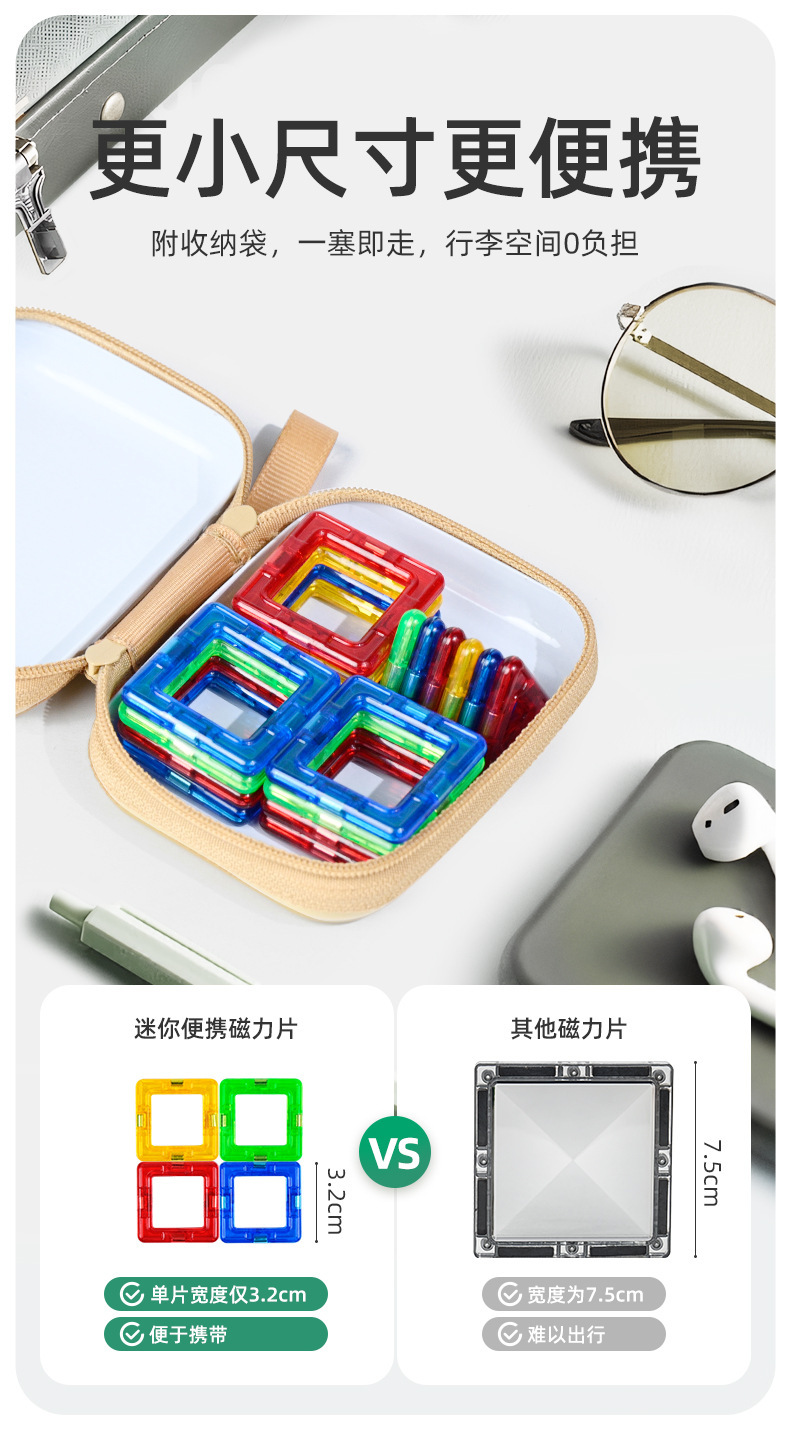 Children's Portable Magnetic Pieces Mini Pocket Educational Building Toy Travel Small Blocks Portable for 14-Year-Olds