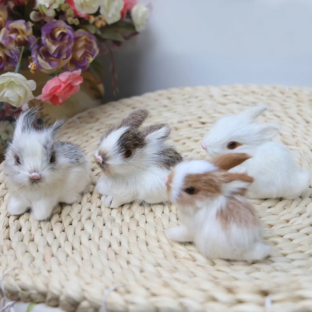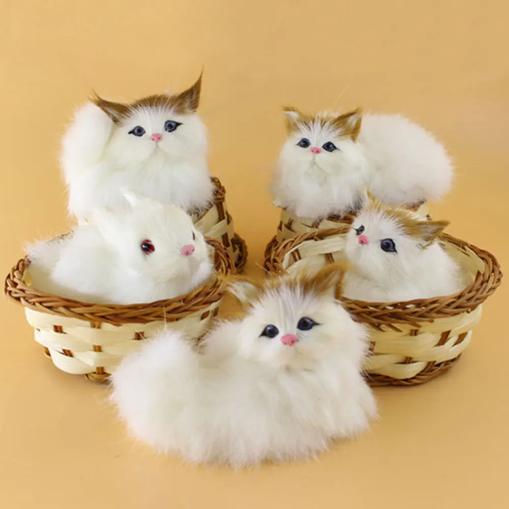 Cute Mini Basket Bunny Cat Dog Stuffed Toy Simulation Plush Animal Toy Ornaments Bedroom Tabletop Car Decorations Kids Gifts