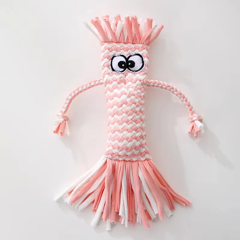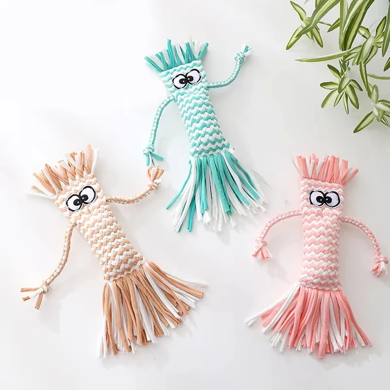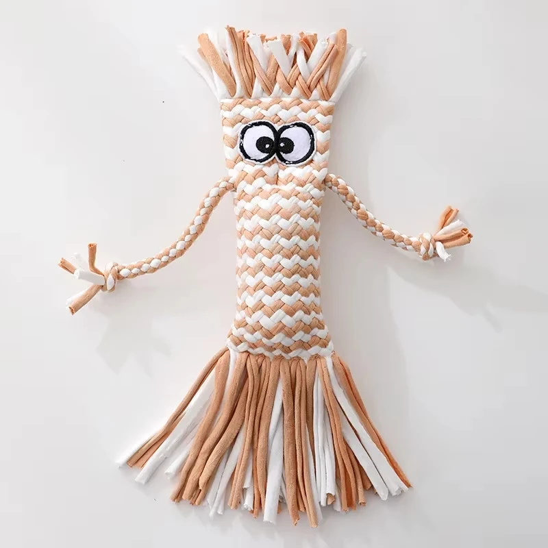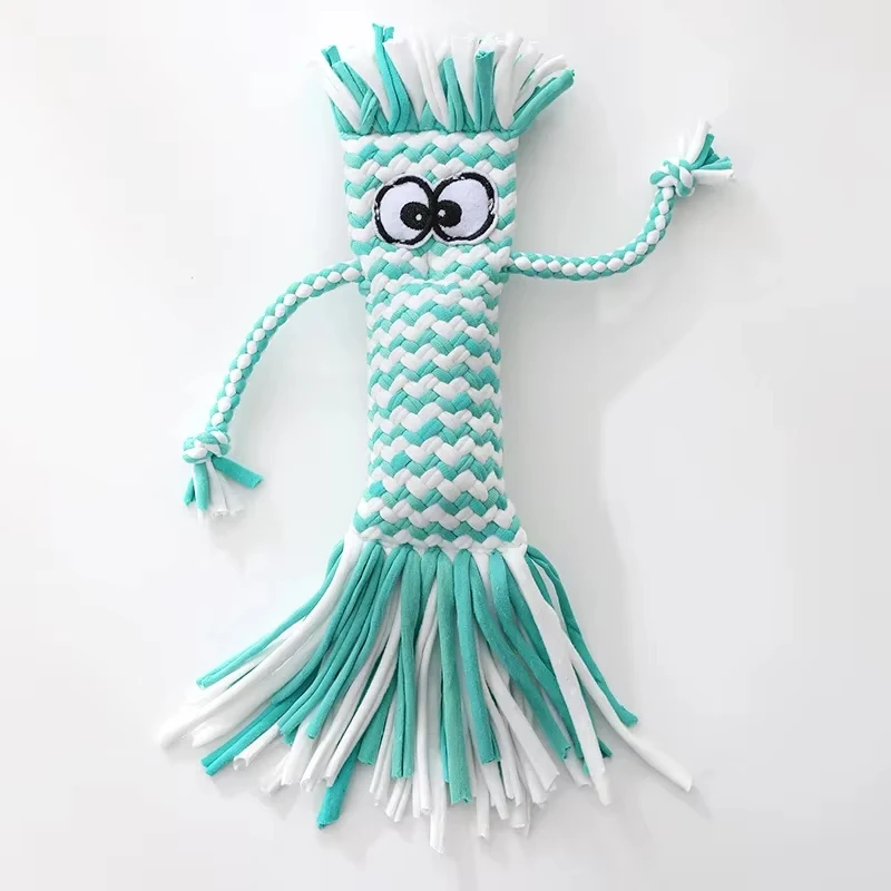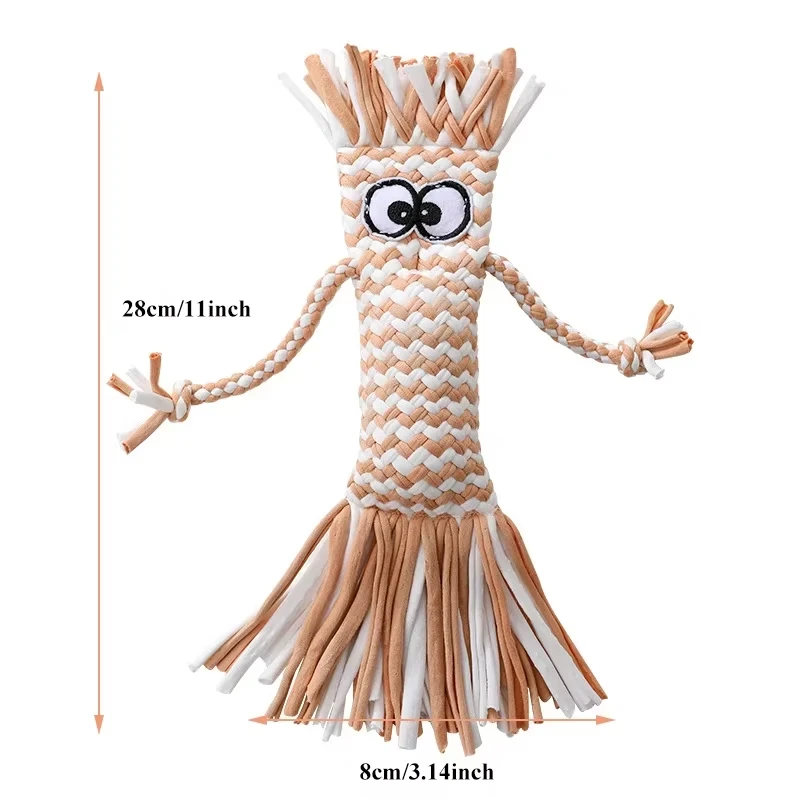 Dog Rope Chew Toy Straw Head Braided Knot Doll Squeaker Sound Toy Molar Dog Toy Pet Training Pet Interactive Toy Pet Supplies