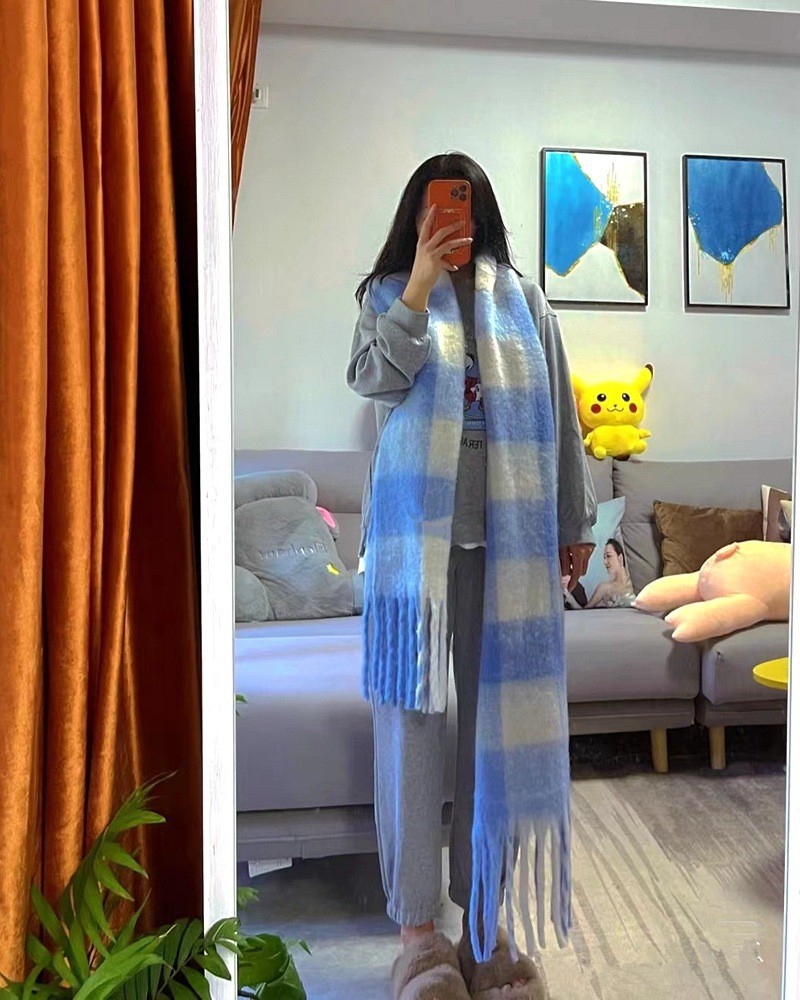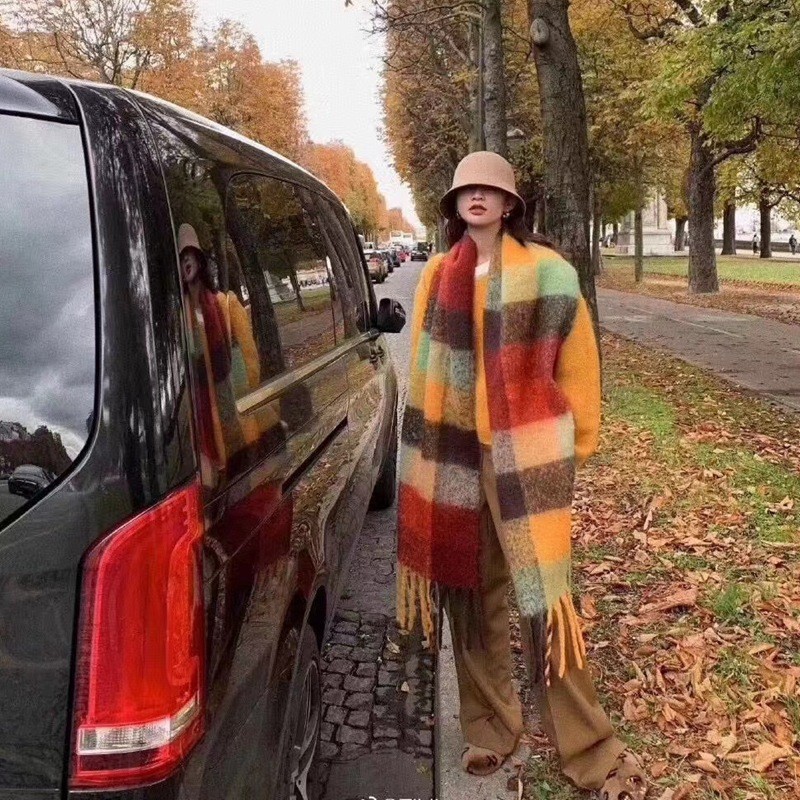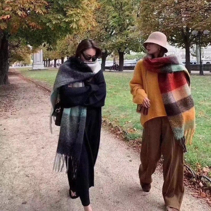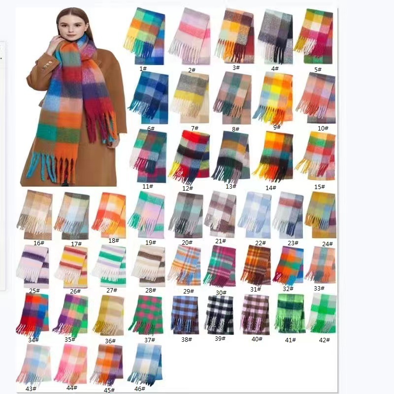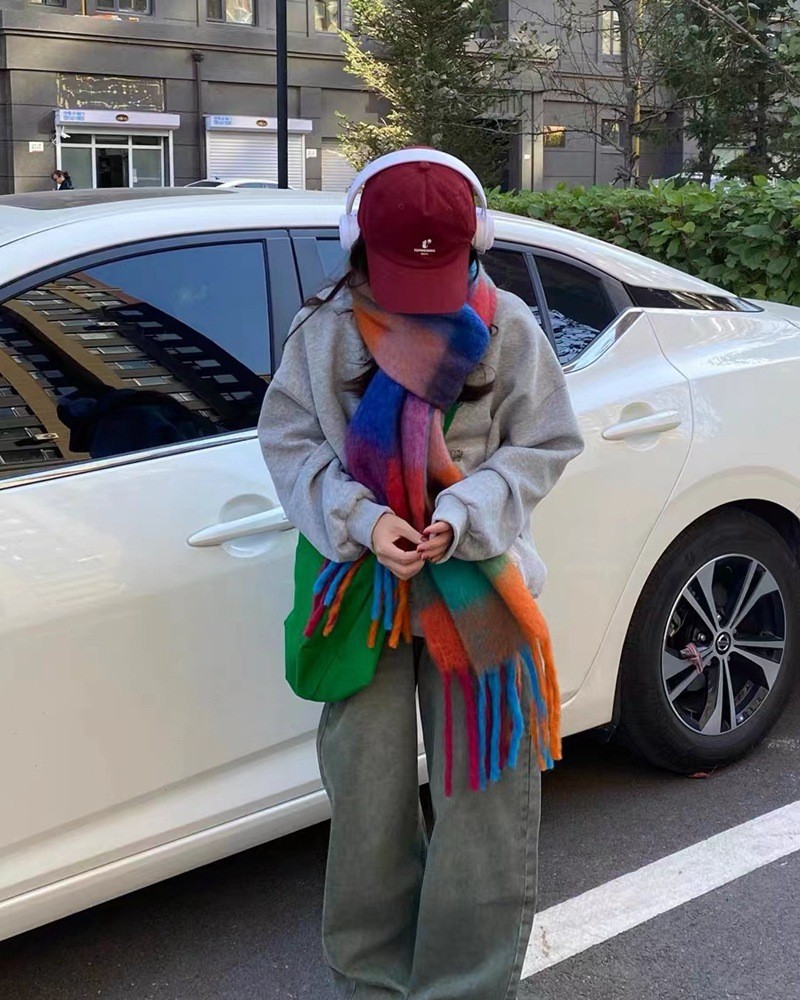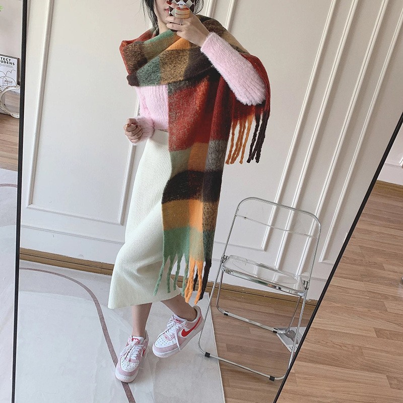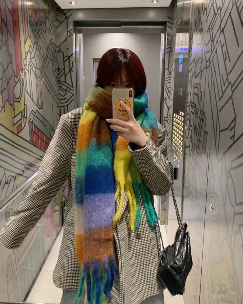 European and American winter New AC rainbow plaid cashmere scarf female student thickened warm mohair scarf shawl