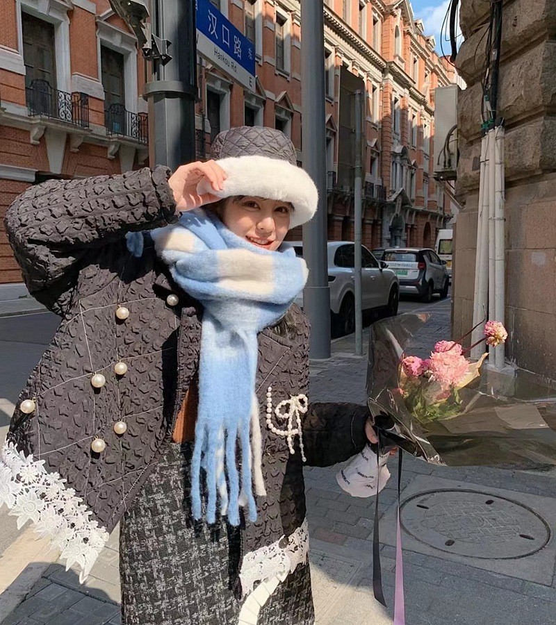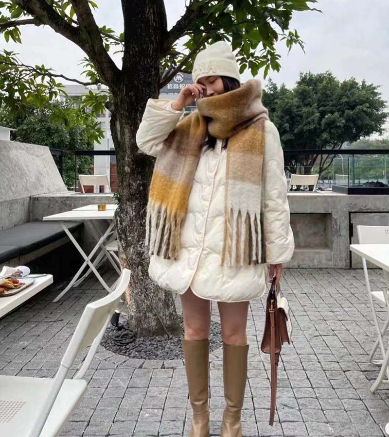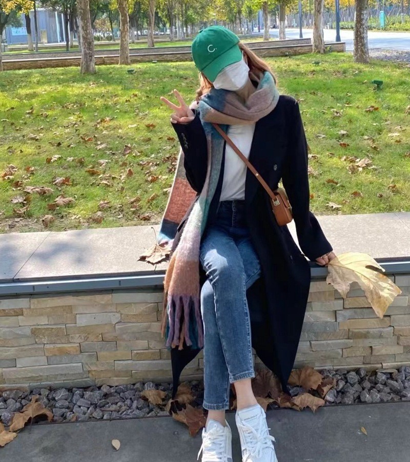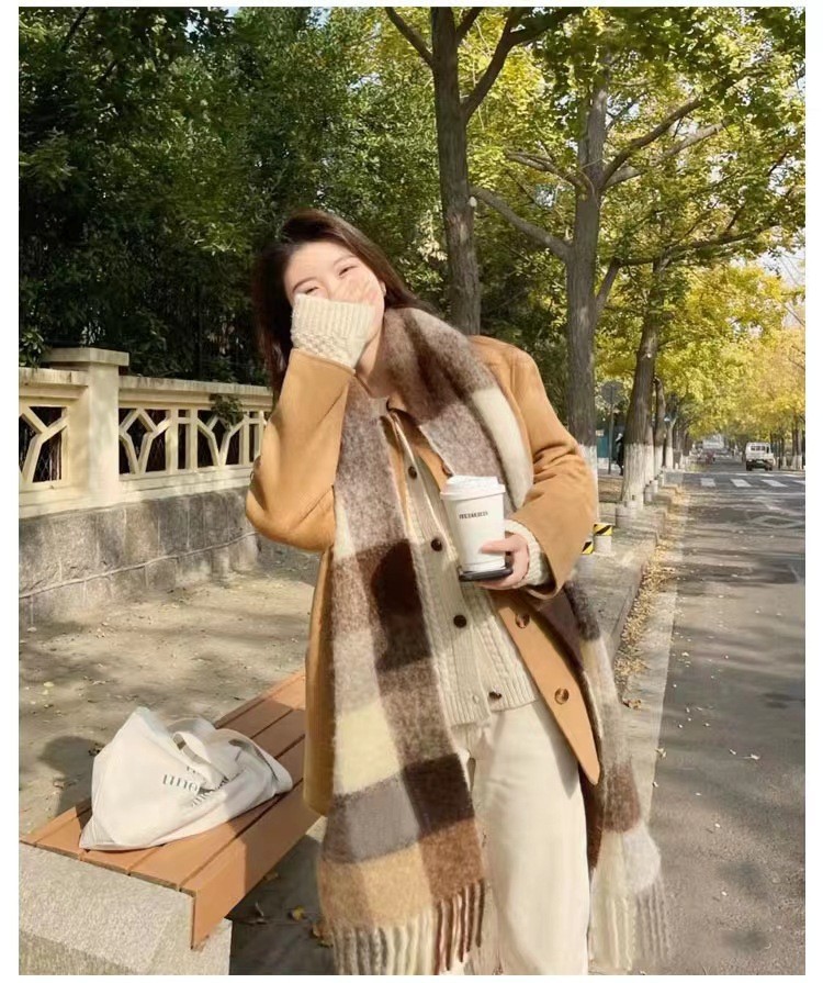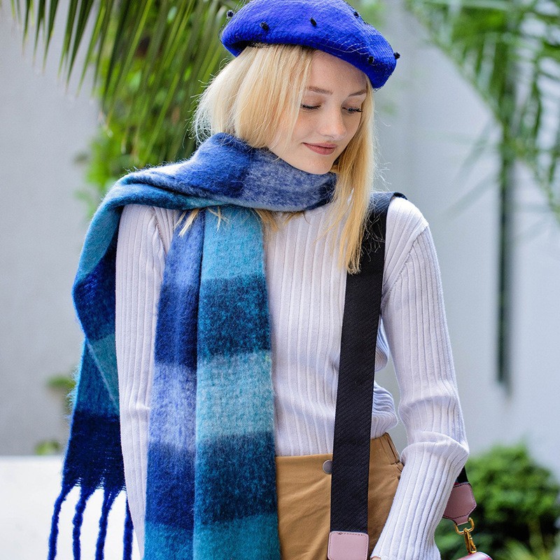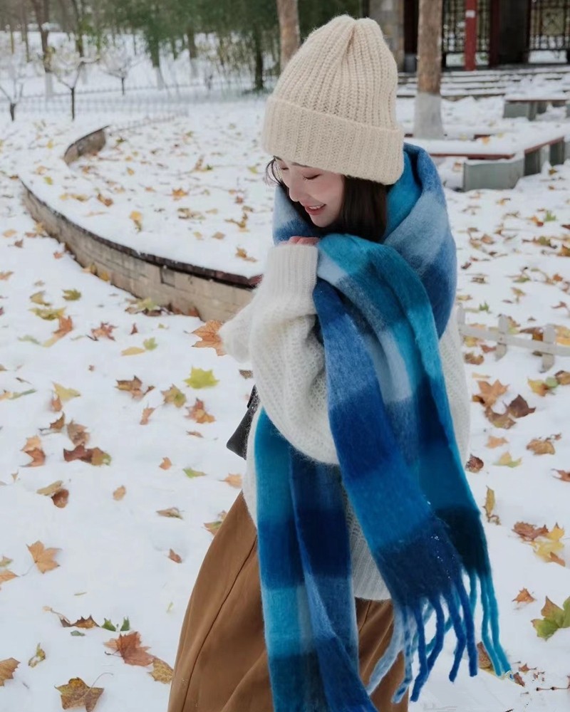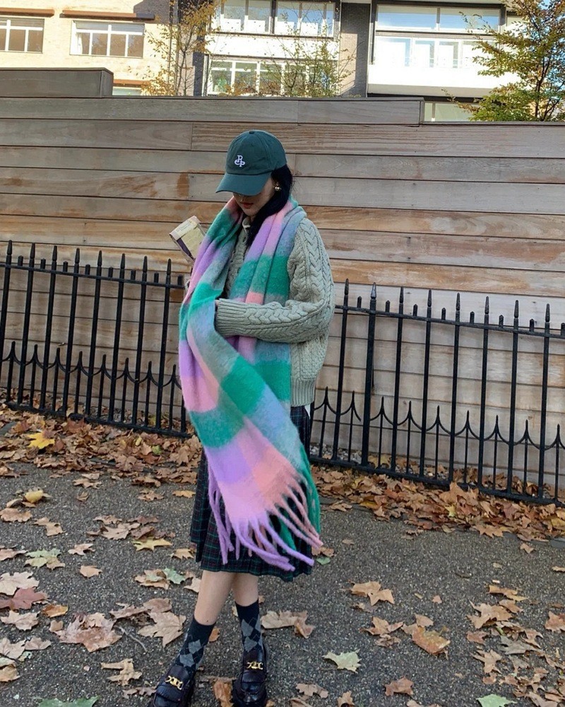 European and American winter New AC rainbow plaid cashmere scarf female student thickened warm mohair scarf shawl