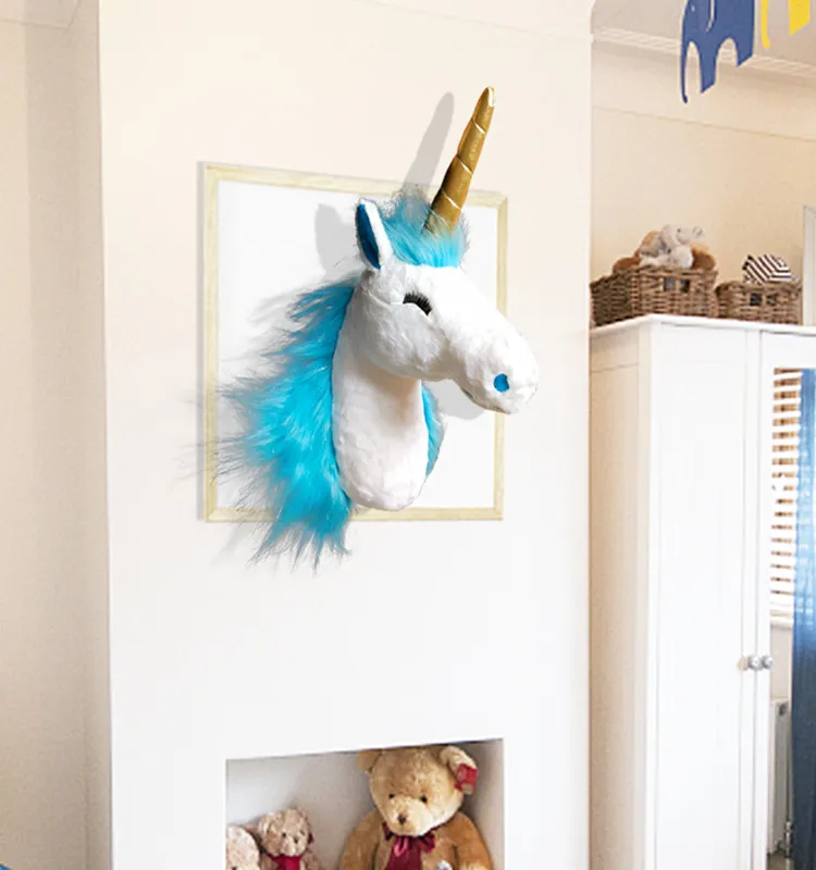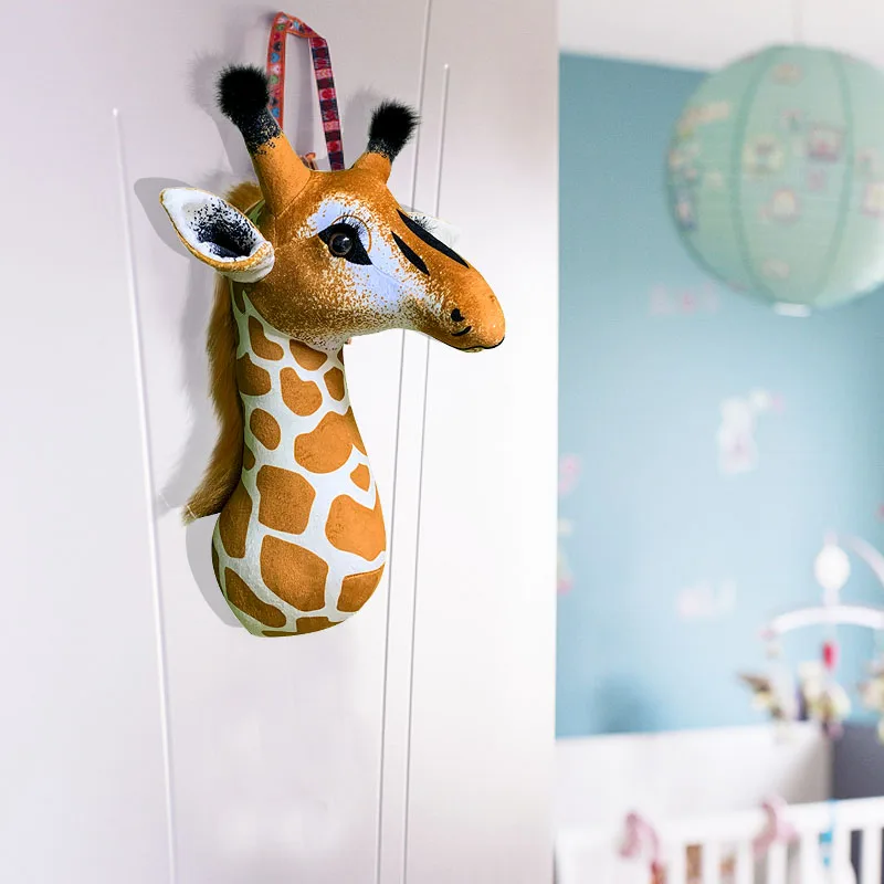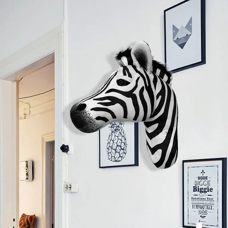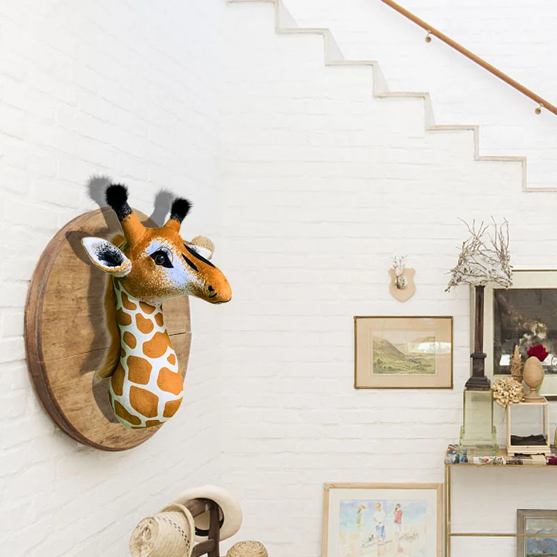 Factory Wholesale INS Style Stuffed Animal Head Wall Decoration Lifelike Funny Printed Kids Bedroom Plushtoys Creative