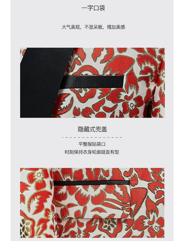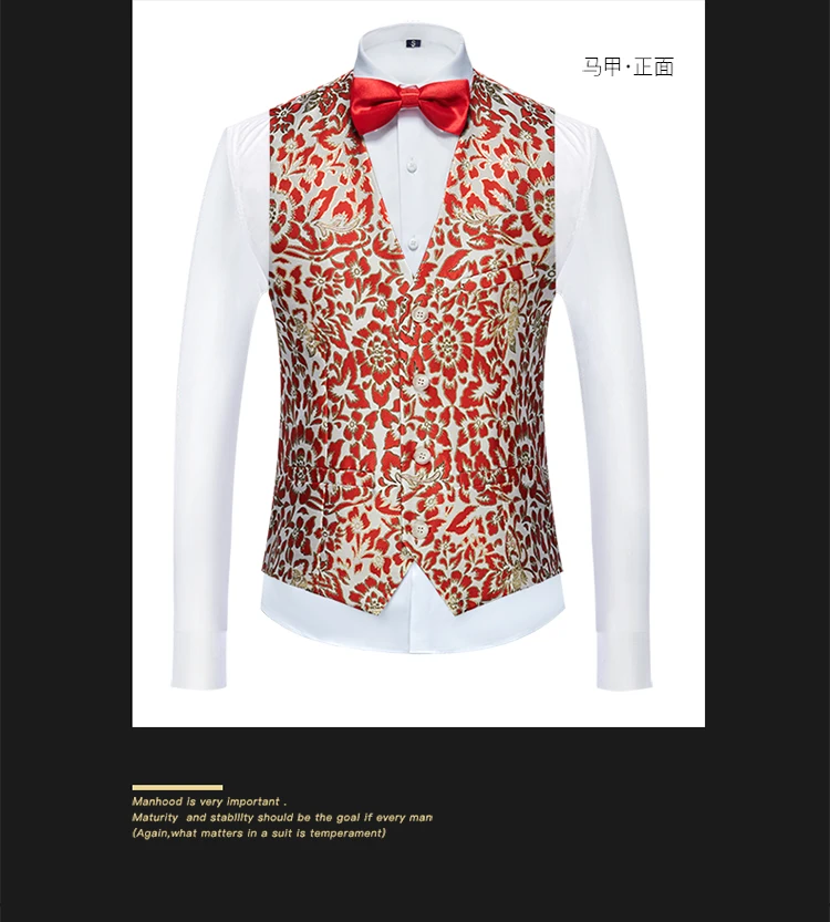Fashion New Men's Casual Business Wedding Flower Suits Coat Trousers 3 Pcs Set / Male Printed Dress Blazers Jacket Pants Vest