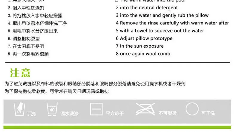 We use professional plush evacuation equipment to evacuate and pack plush toys. Due to the large size of plush toys, they can only be better protected during transportation after being evacuated. Therefore, when you receive the product, it may be slightly smaller or wrinkled than described. Please do not be surprised, as this is a normal phenomenon. After opening it, shake it a few times and expose it to the sun for half an hour to immediately restore it