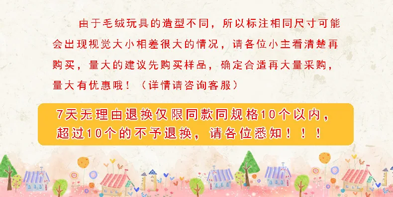 All babies are measured in kind. The plush toy itself is soft, and there will be a certain error (about 3cm)