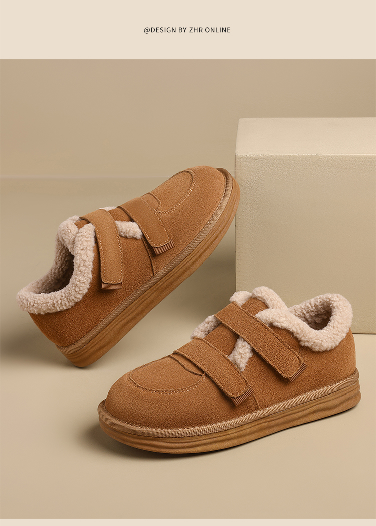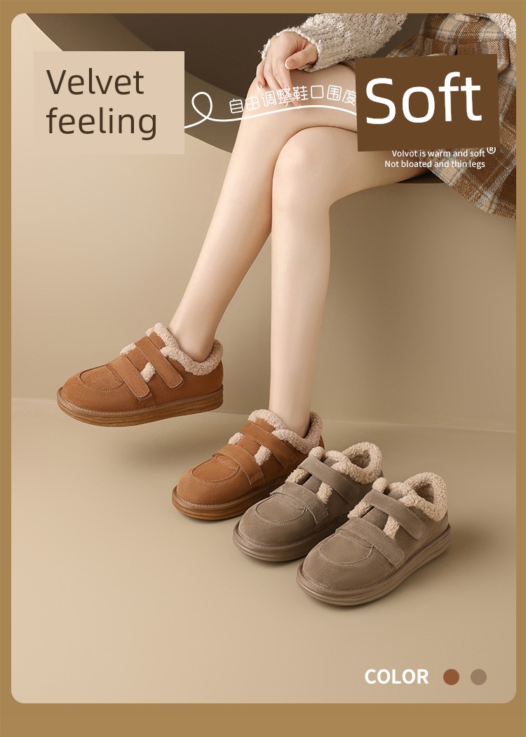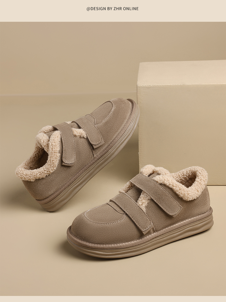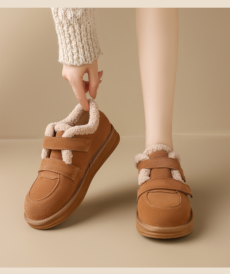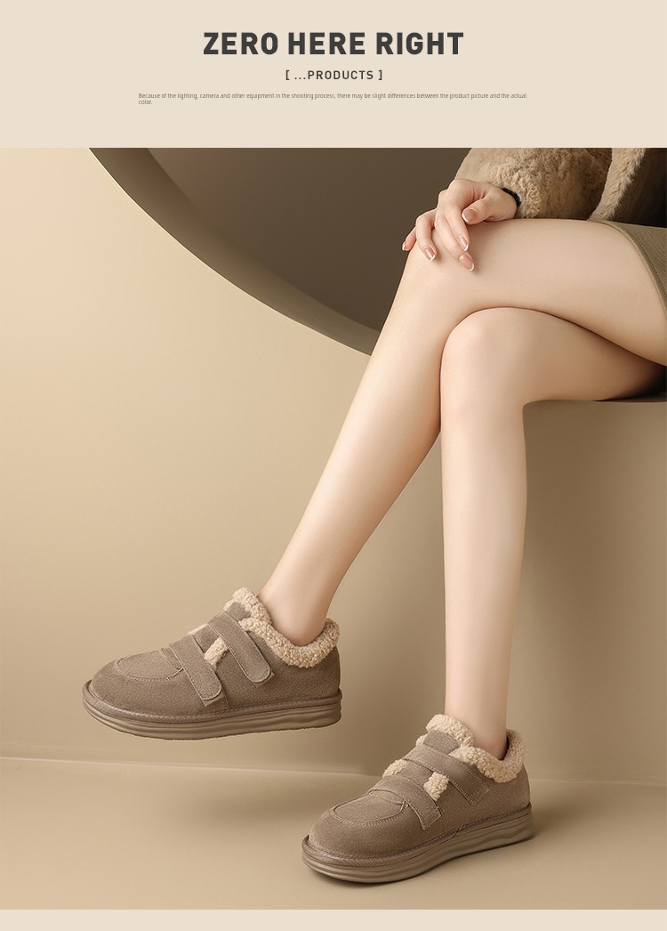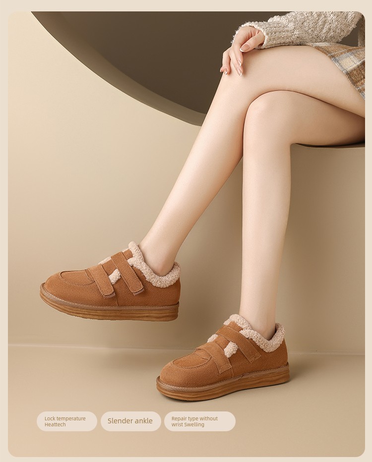 Genuine Leather Snow Boots Women's 2024 Winter New Arrival Fleece-lined Thickened Non-Slip Warm Northeast Cotton Padded Shoes Velcro Plush Board Shoes