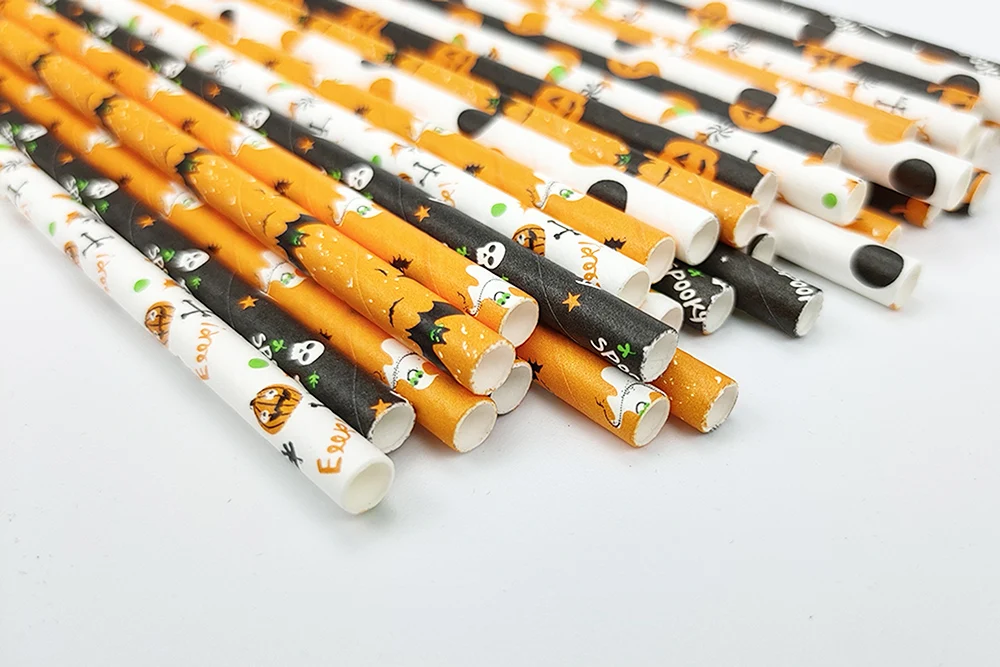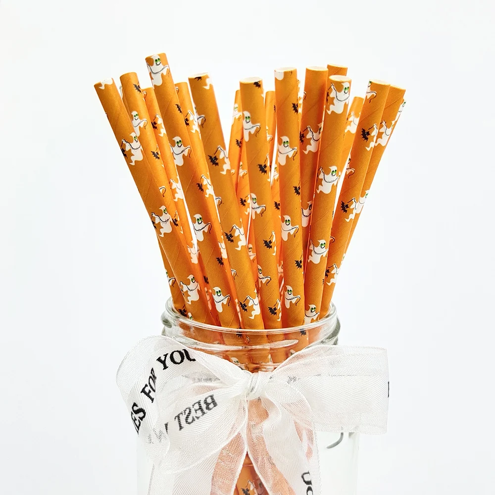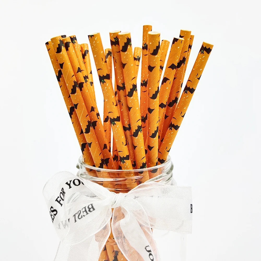 Halloween Drinking Paper Straws, Pumpkin Bat, Spider Skeleton, Ghost Pattern, Party Supplies Decoration, 25Pcs