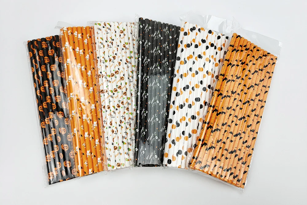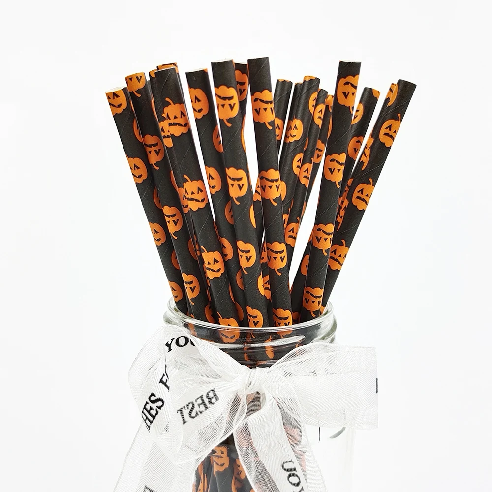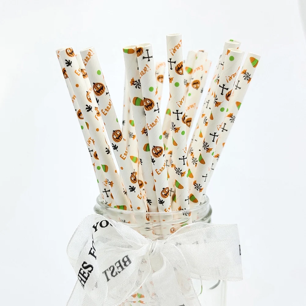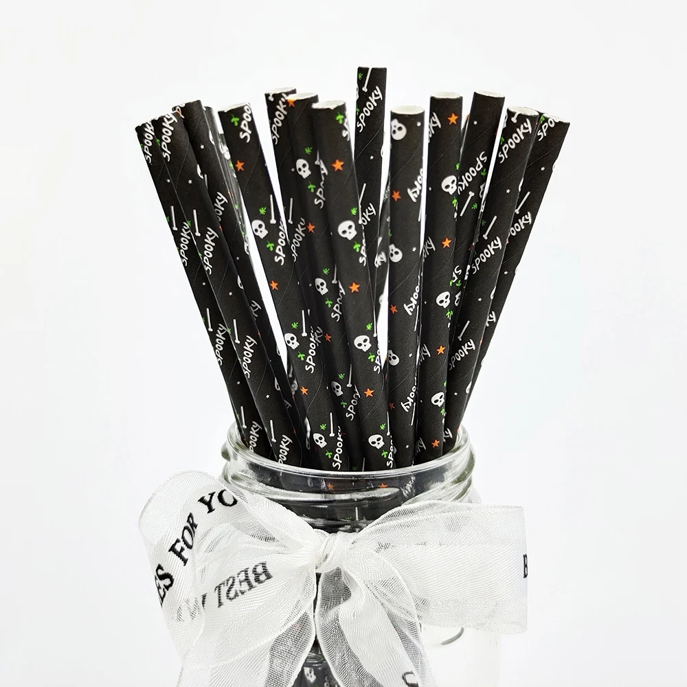 Halloween Drinking Paper Straws, Pumpkin Bat, Spider Skeleton, Ghost Pattern, Party Supplies Decoration, 25Pcs