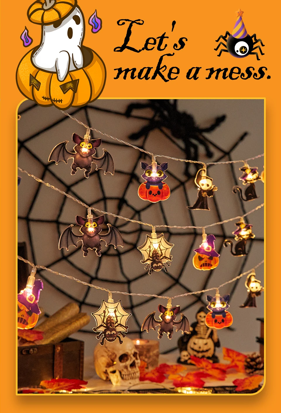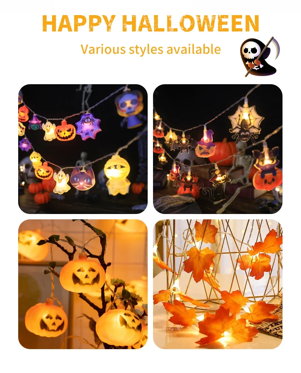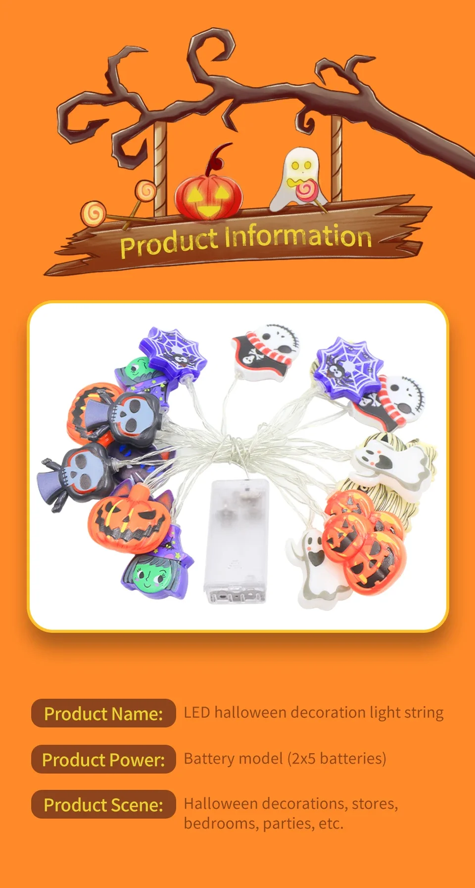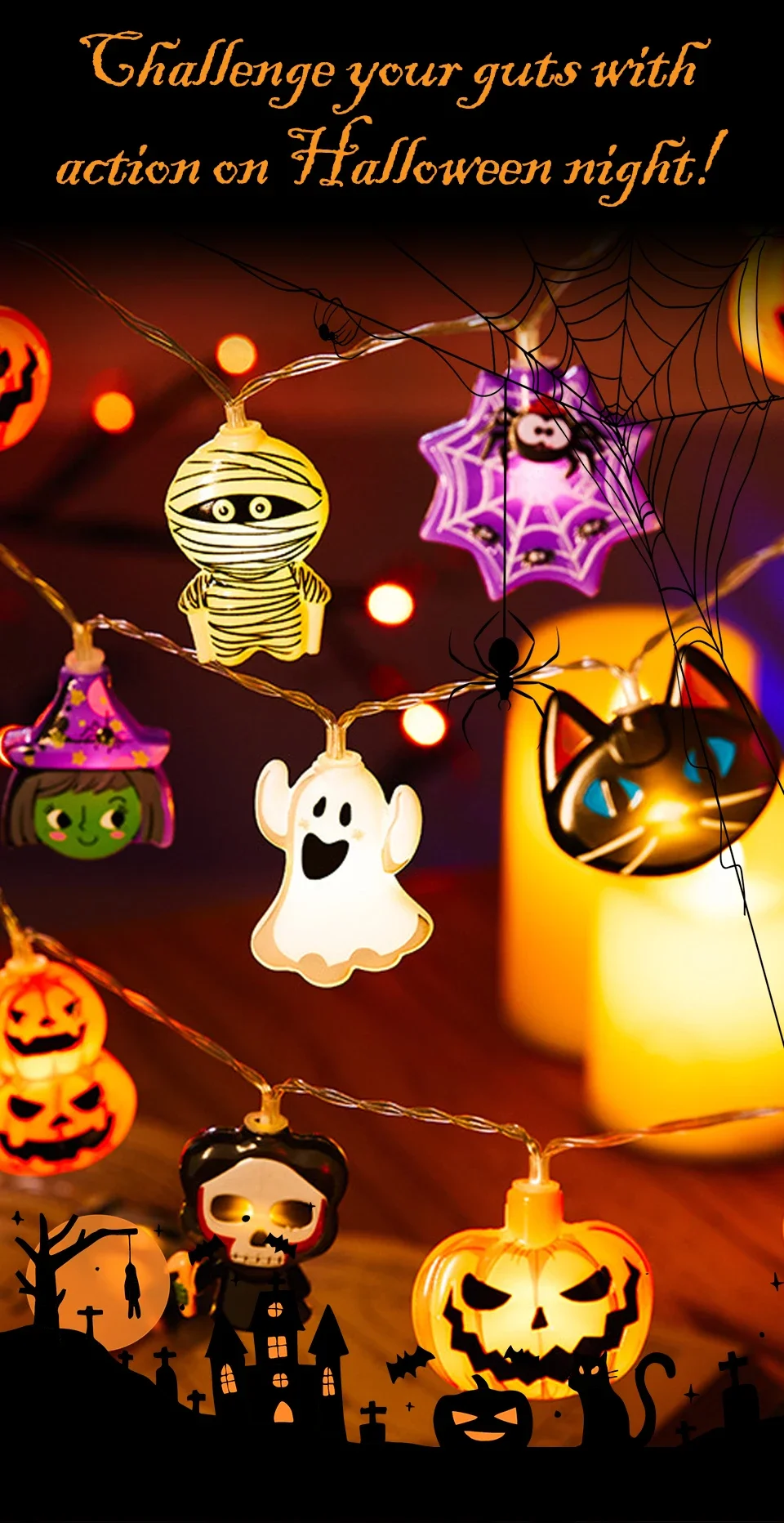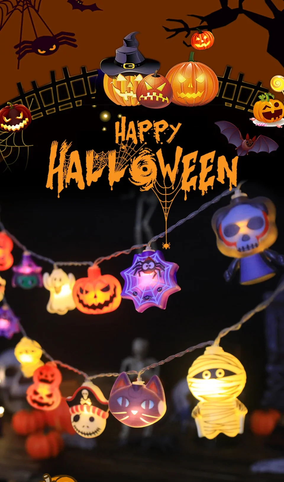 Halloween Party LED String Lights Ghost Pumpkin Spider Web Hanging Lamp For Halloween Home Indoor Outdoor Decoration Props 2024