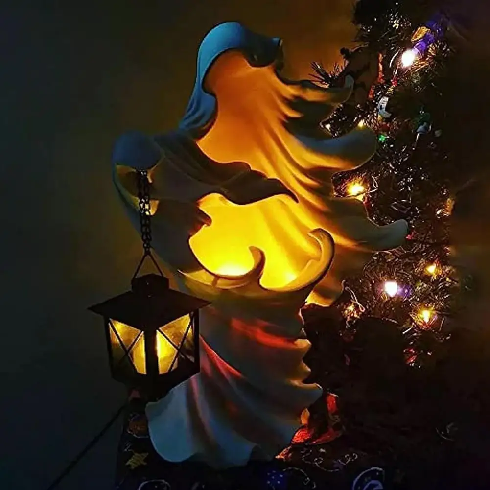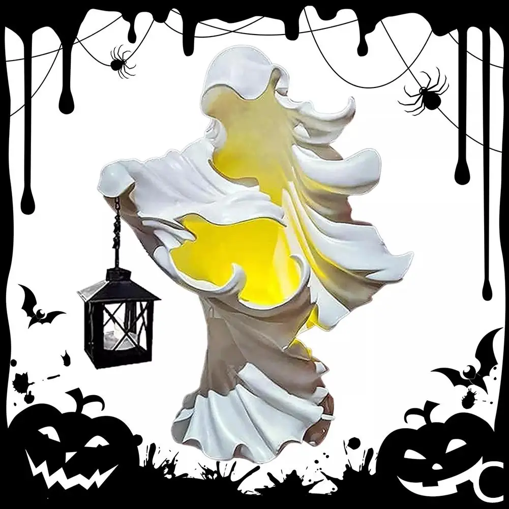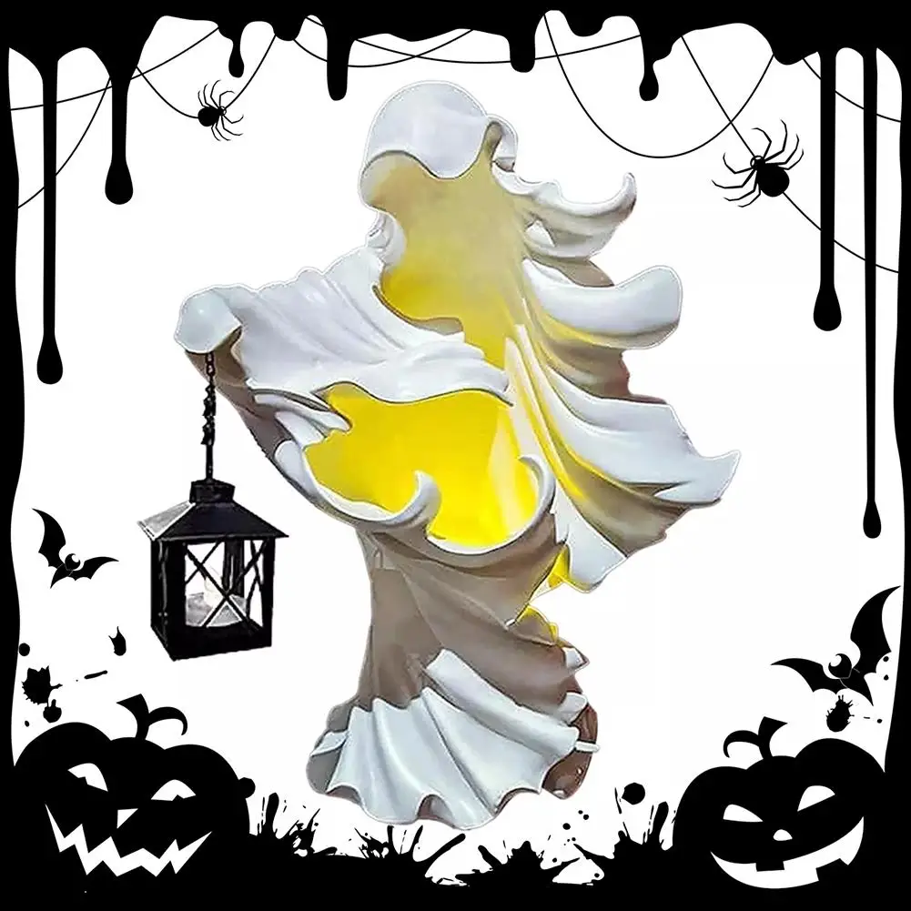 1.Our witch lantern statue gives off a weird vibe! This one-of-a-kind Halloween ornament features a faceless ghost sculpture holding a lantern, perfect for creating scary scenes
