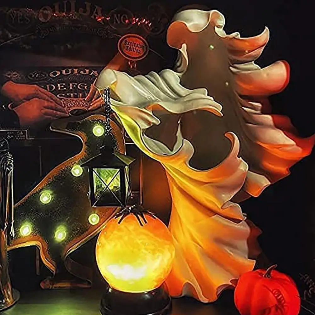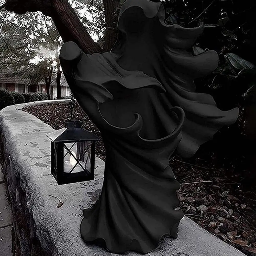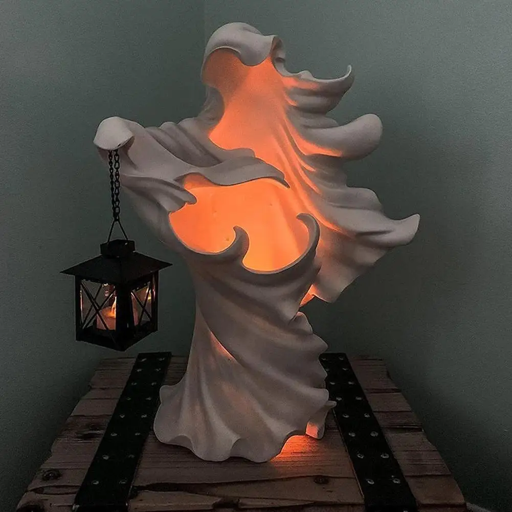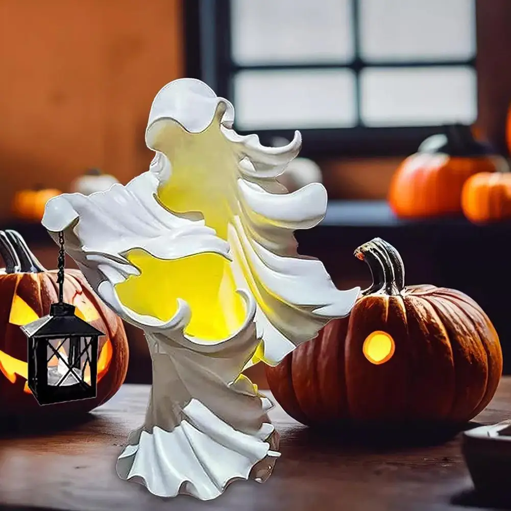 1.Our witch lantern statue gives off a weird vibe! This one-of-a-kind Halloween ornament features a faceless ghost sculpture holding a lantern, perfect for creating scary scenes