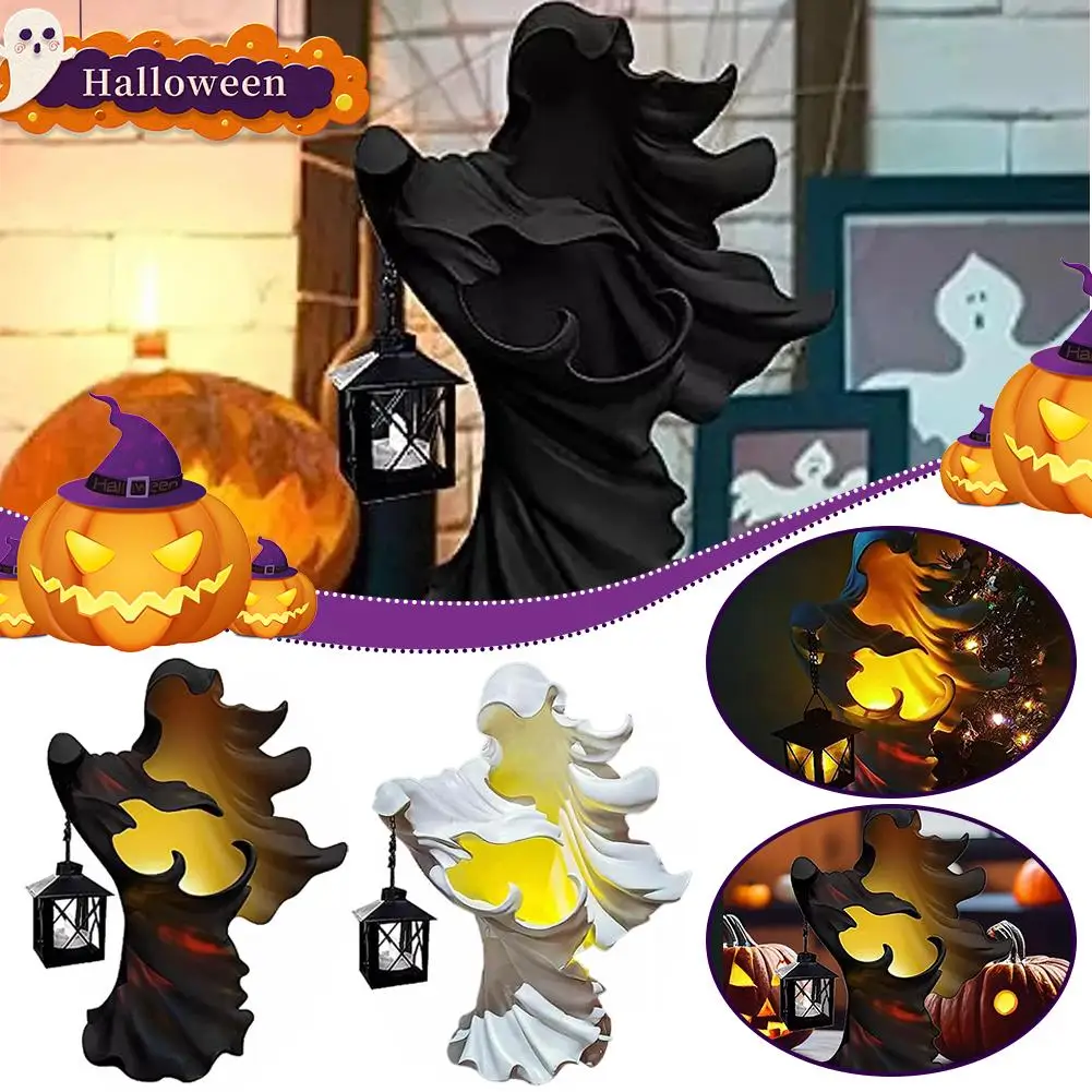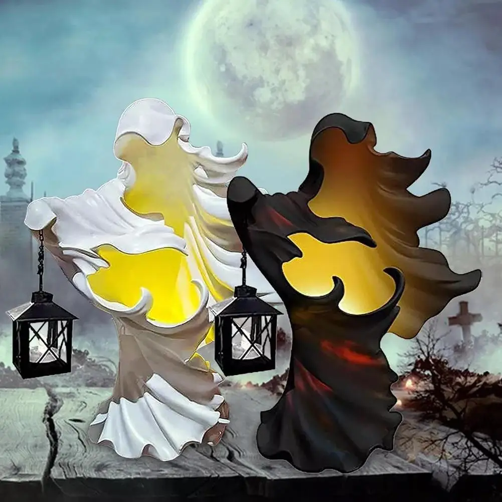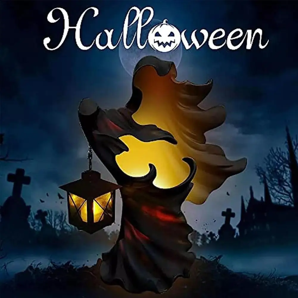Halloween Resin Decor Hells Messenger With Lantern Hells Messenger With Lantern Garden Statue Ghost Scary Decoration For Home