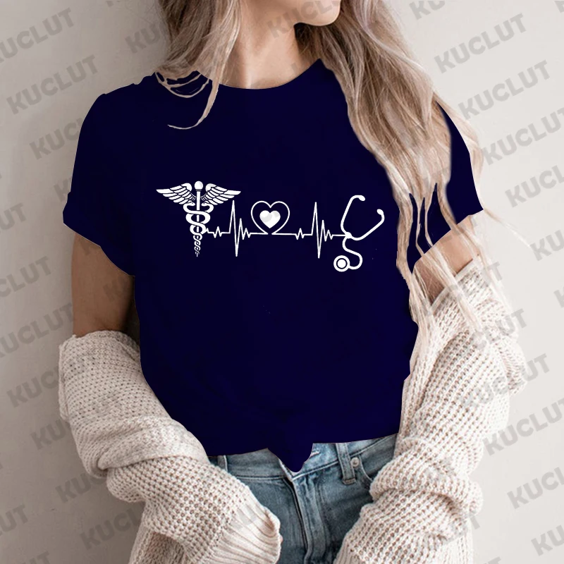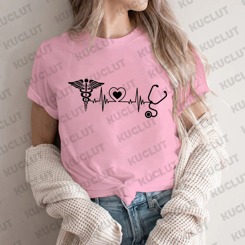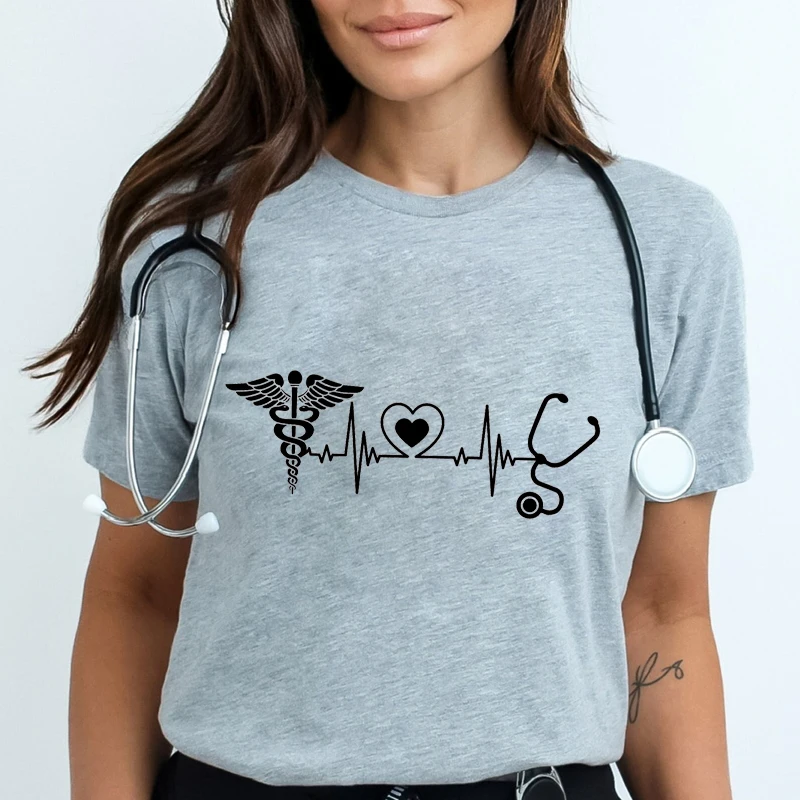 Heartbeat Nurse T-shirts for Women Clothing Doctor Shirt Medical Print Tshirt Nurse Life Tee Shirts Clothes Hospital Staff Shirt