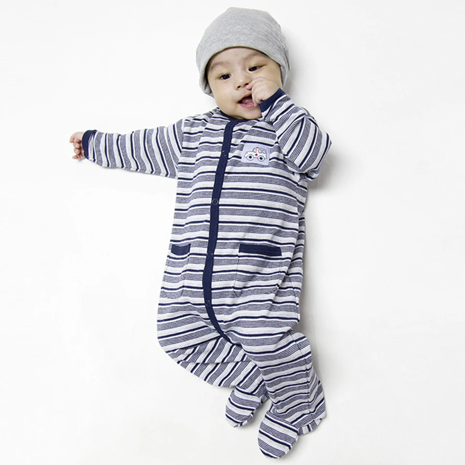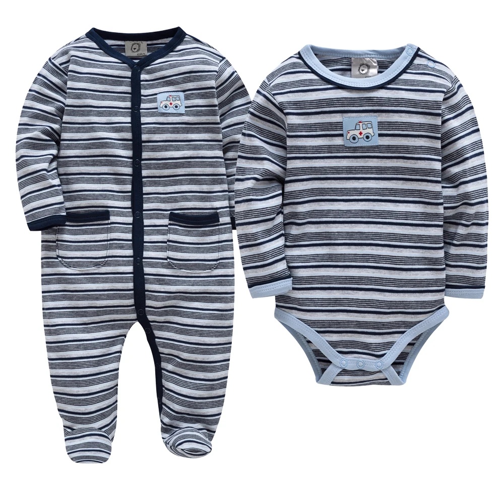 Honeyzone Newborn Baby Boy Clothes Rompers Stripe Full Sleeve Ambulance Onesie Jongen Infant Combination Jumpsuit Pyjamas Bebes