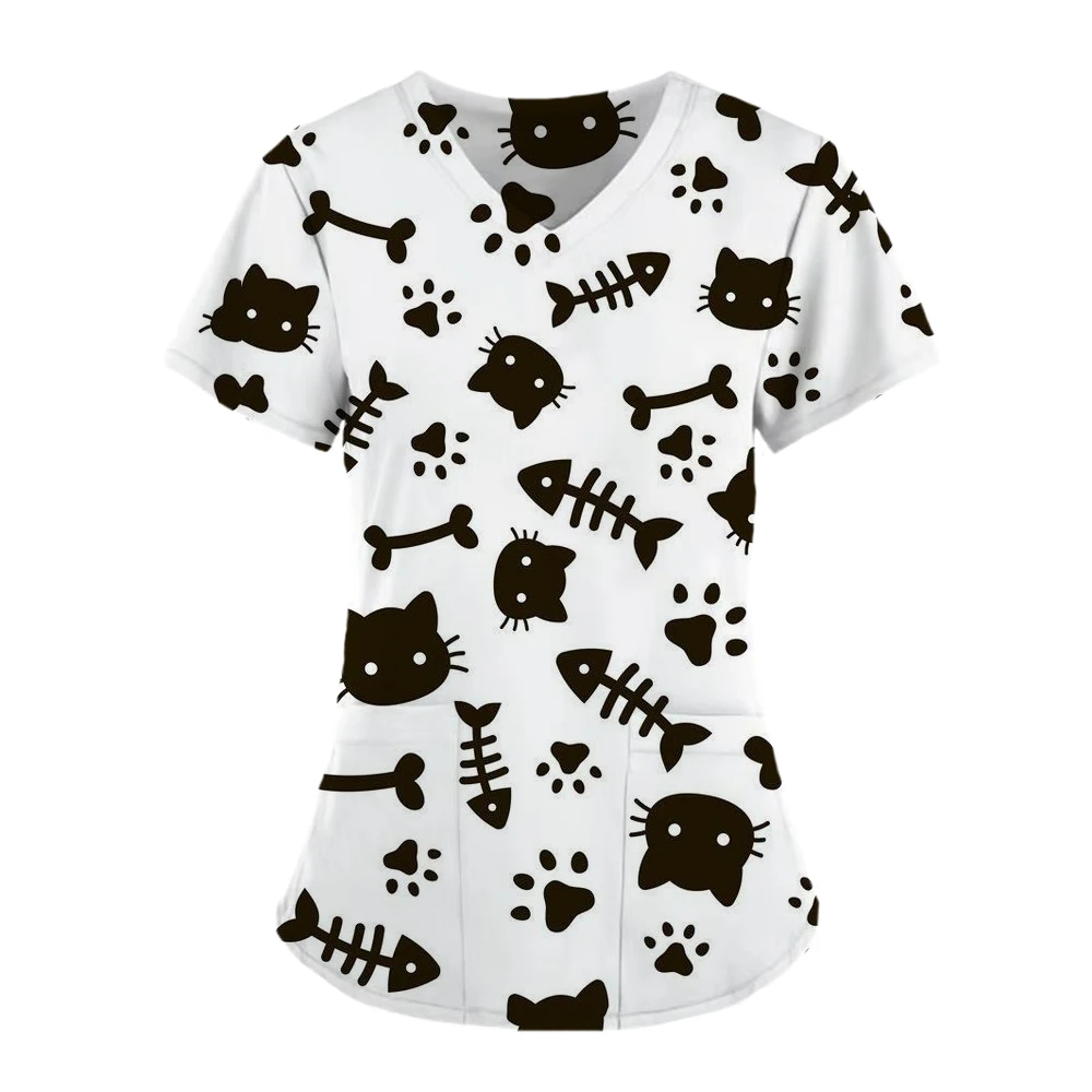 Hospital Nursing Scrub Top Animal Printed Uniform High-quality Doctor Surgical Gown Hospital Accessories Pediatric Clinical Tops
