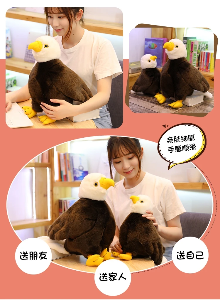 Lifelike Bald Eagles Birds Plush Stuffed Toys Funny Seagull Animal Cartoon Doll Soft Feathers Toy House Decor Birthday Gift