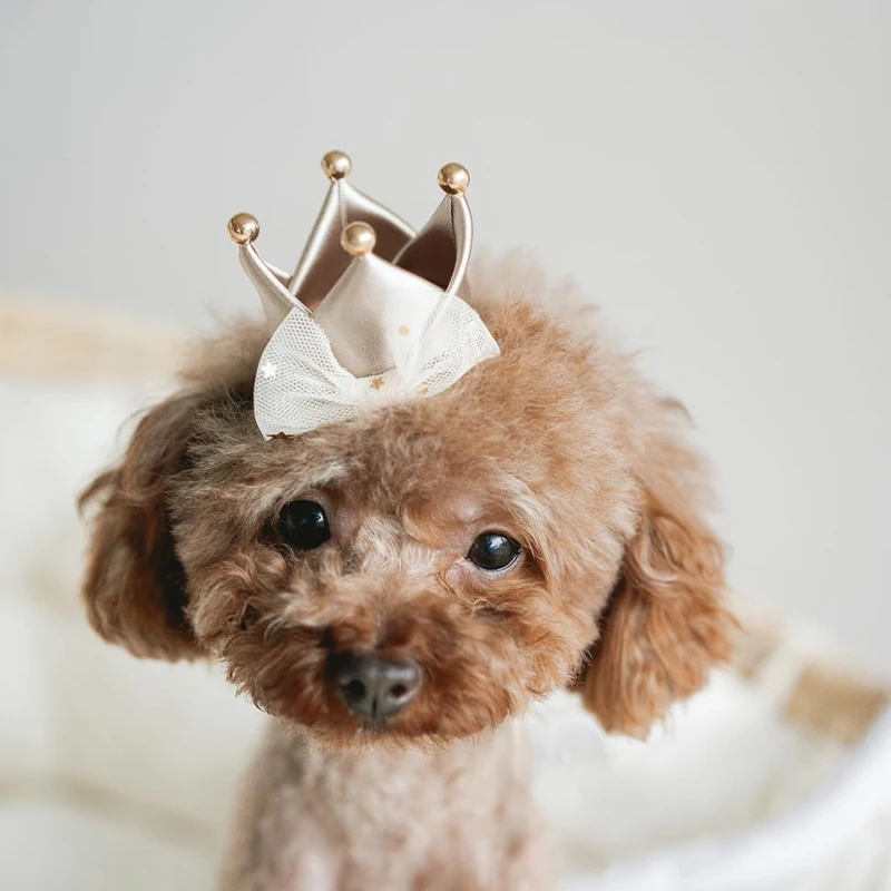 A champagne gold crown makes a stylish statement on your pet's birthday.