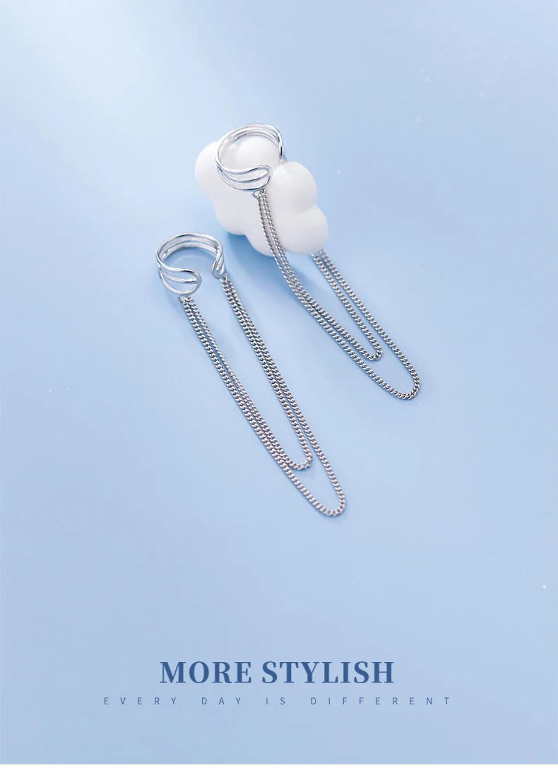Modian 100% 925 Sterling Silver Luxury Tassel Earrings For Women Exquisite Clip Earrings Bone Fashion Party Girls Jewelry