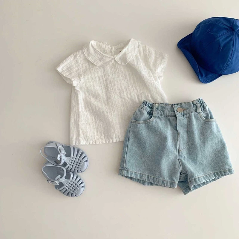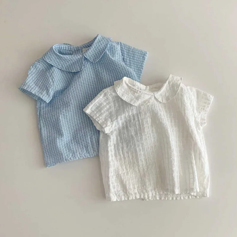 Newborn Baby Boy Girl Cotton Solid Pullover Shirt Infant Toddler Cute Short Sleeve Loose Tops Summer Baby Clothes 3M-2T