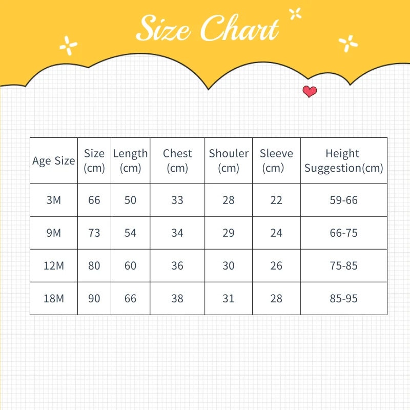 Age Size(cm): 3M, 9M, 12M, 18M;