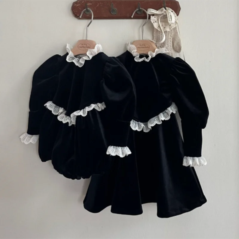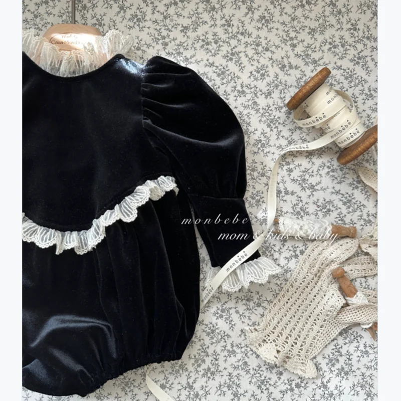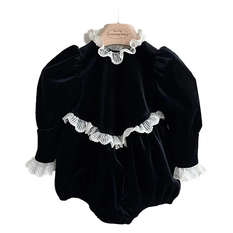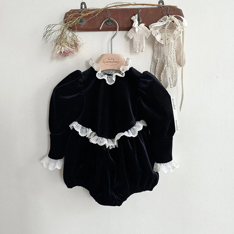 Newborn Baby Girls Lace Rompers Velvet Long Sleeve Infant One-Pieces Baby Bodysuit for Toddler Clothing Children Outfits 0-24m