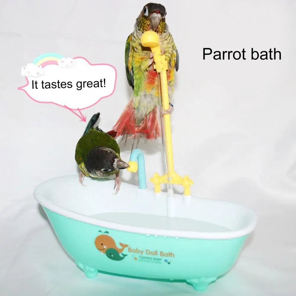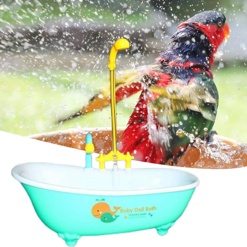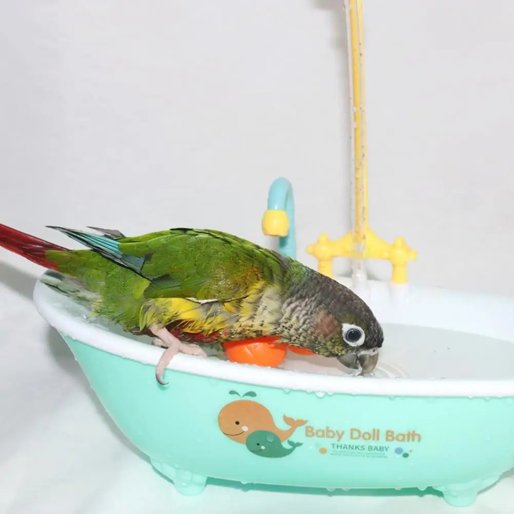 Parrot Automatic Bathtub Toy with Faucet Realistic Washing Parakeets Budgie Cockatiel Conure Parrot Bath Box Bird Supplies