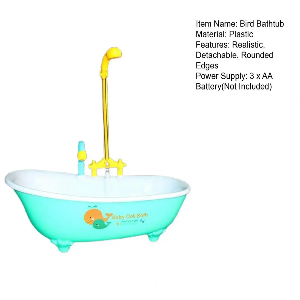 The multifunctional design features a water dispensable bath head and a cute bathtub design for pet birds to play and bathe.