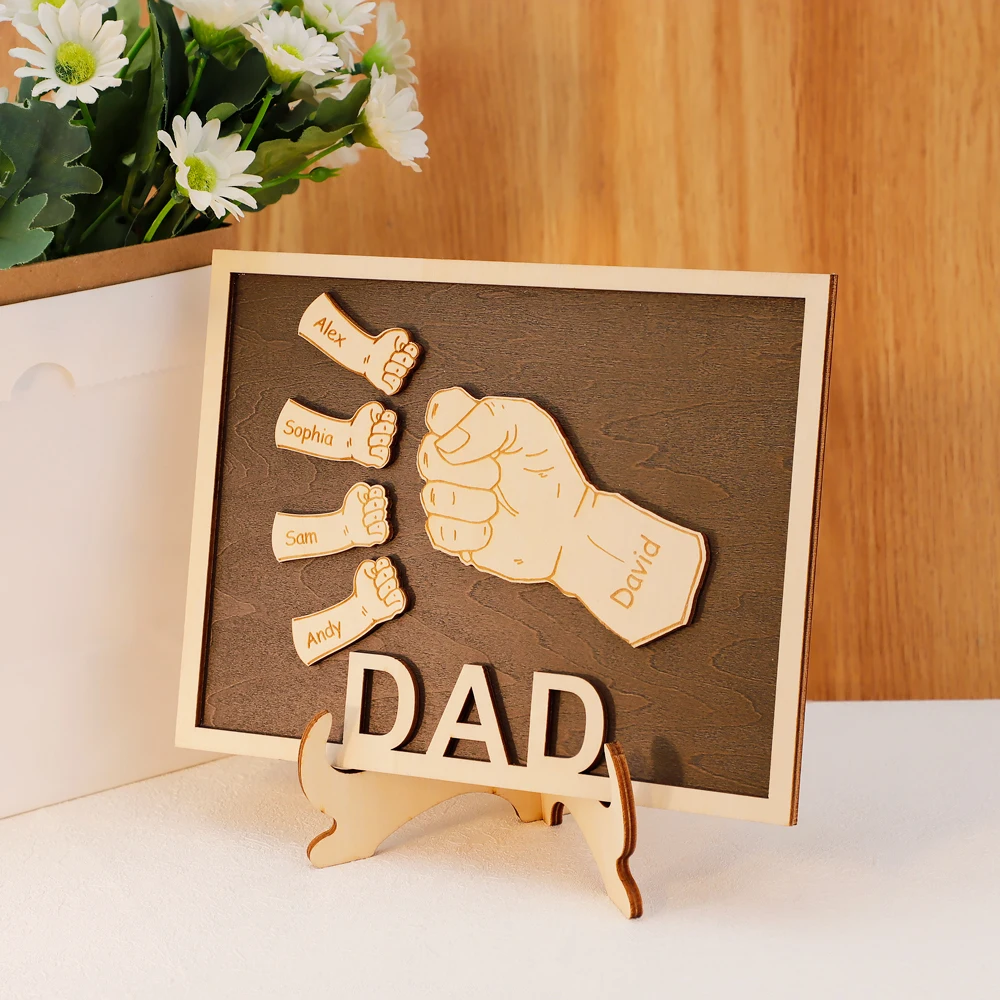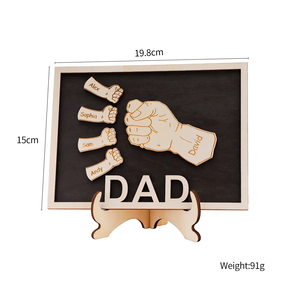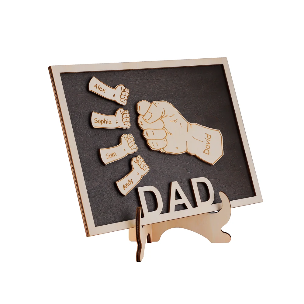 Personalized Fist Wood Gift Fathers Day Gift Custom Family Names Wood Craft 15x19.8cm