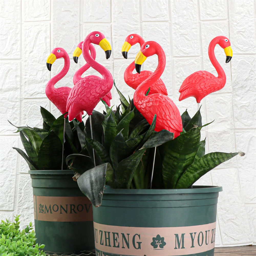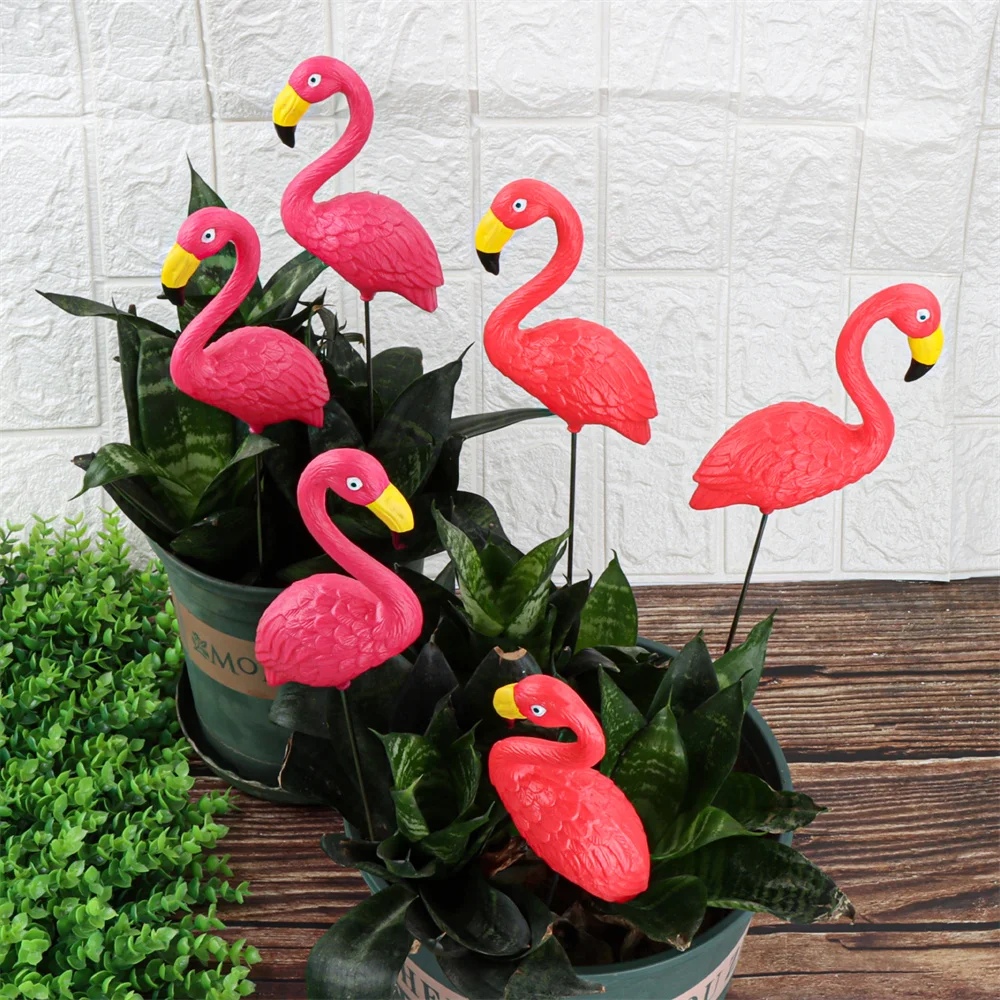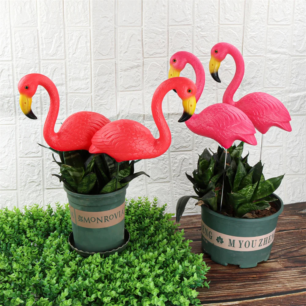 Pink and Red Small Realistic Flamingo Yard Decoration Bird Lawn Garden Stake Statue Figurines Ornament for Flowerpot Planter