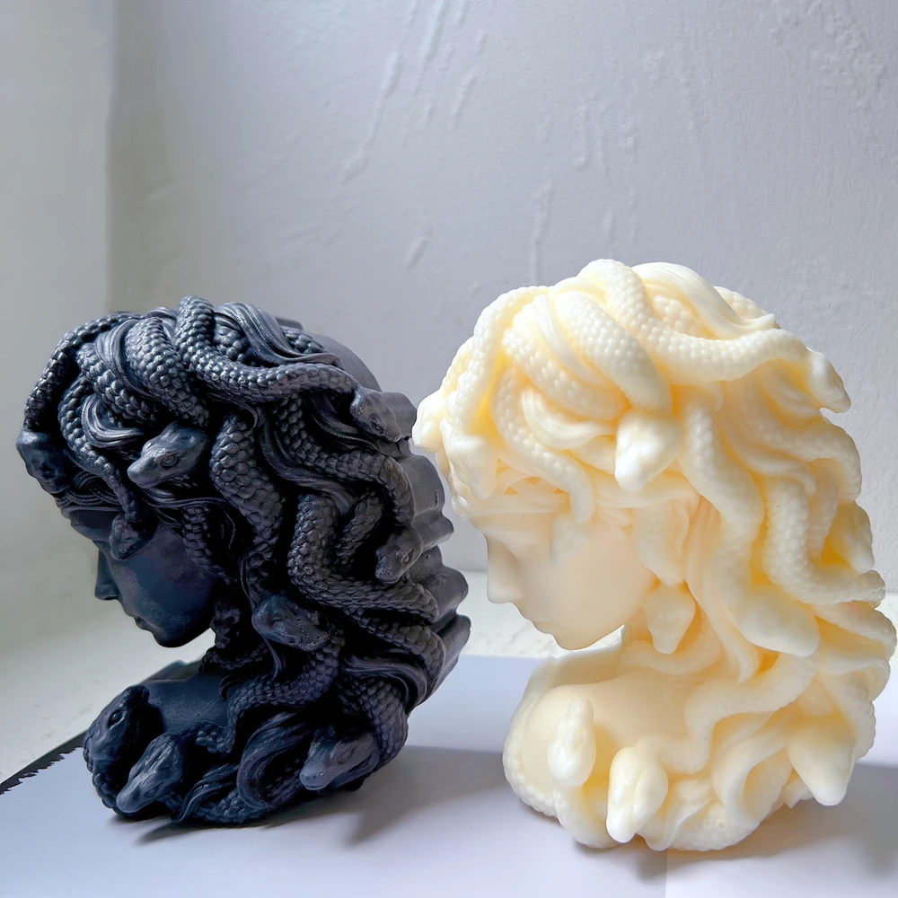 Realistic Medusa Bust Silicone Mold Snake Head Woman Candles Mould Greek Sculpture Body Face Terror Figure