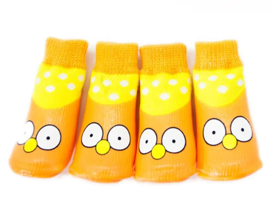 Small Dog Pet Socks Cartton Design 4pcs/Set Waterproof Puppy Shoes Casual Autumn/Winter Pet Socks for Dogs Puppies