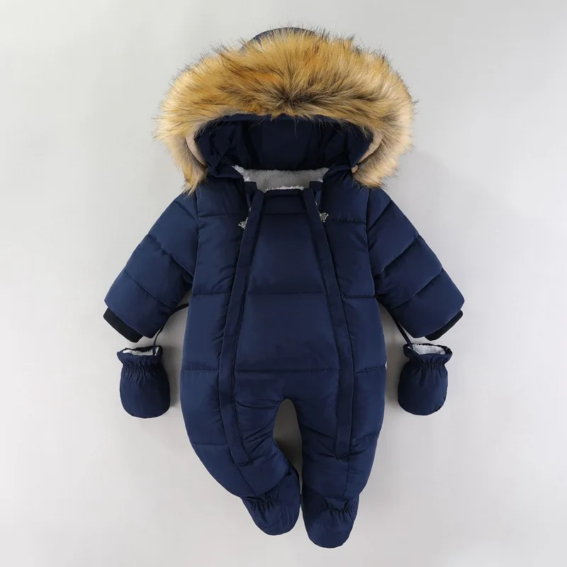 Winter Baby Jumpsuit Thick Warm Infant Hooded Inside Fleece Rompers Newborn Boy Girl Overalls Outerwear Kids Snowsuit